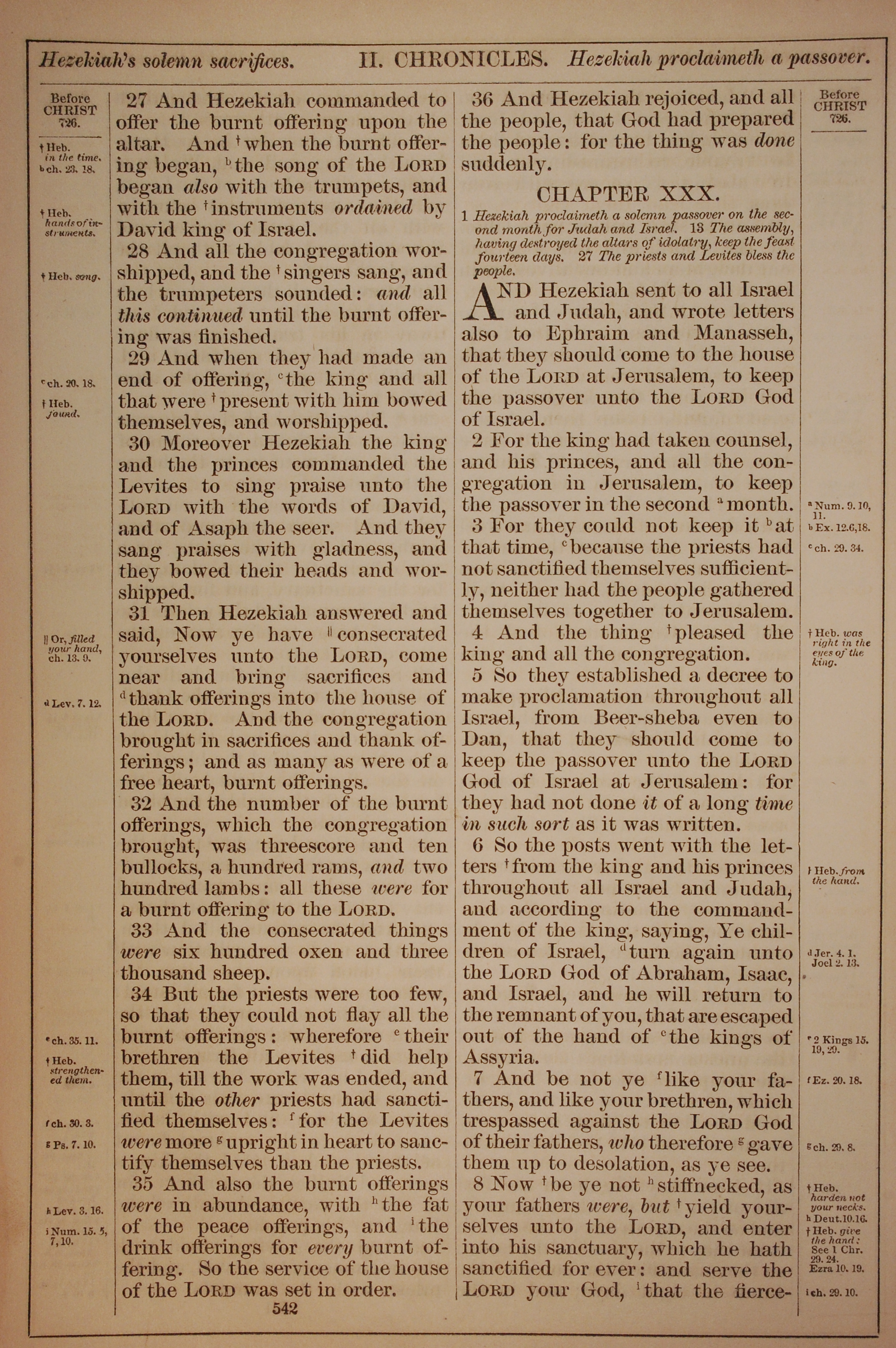 1882年Holy Bible 歷代志下 29 章 27 節到 30 章 8 節