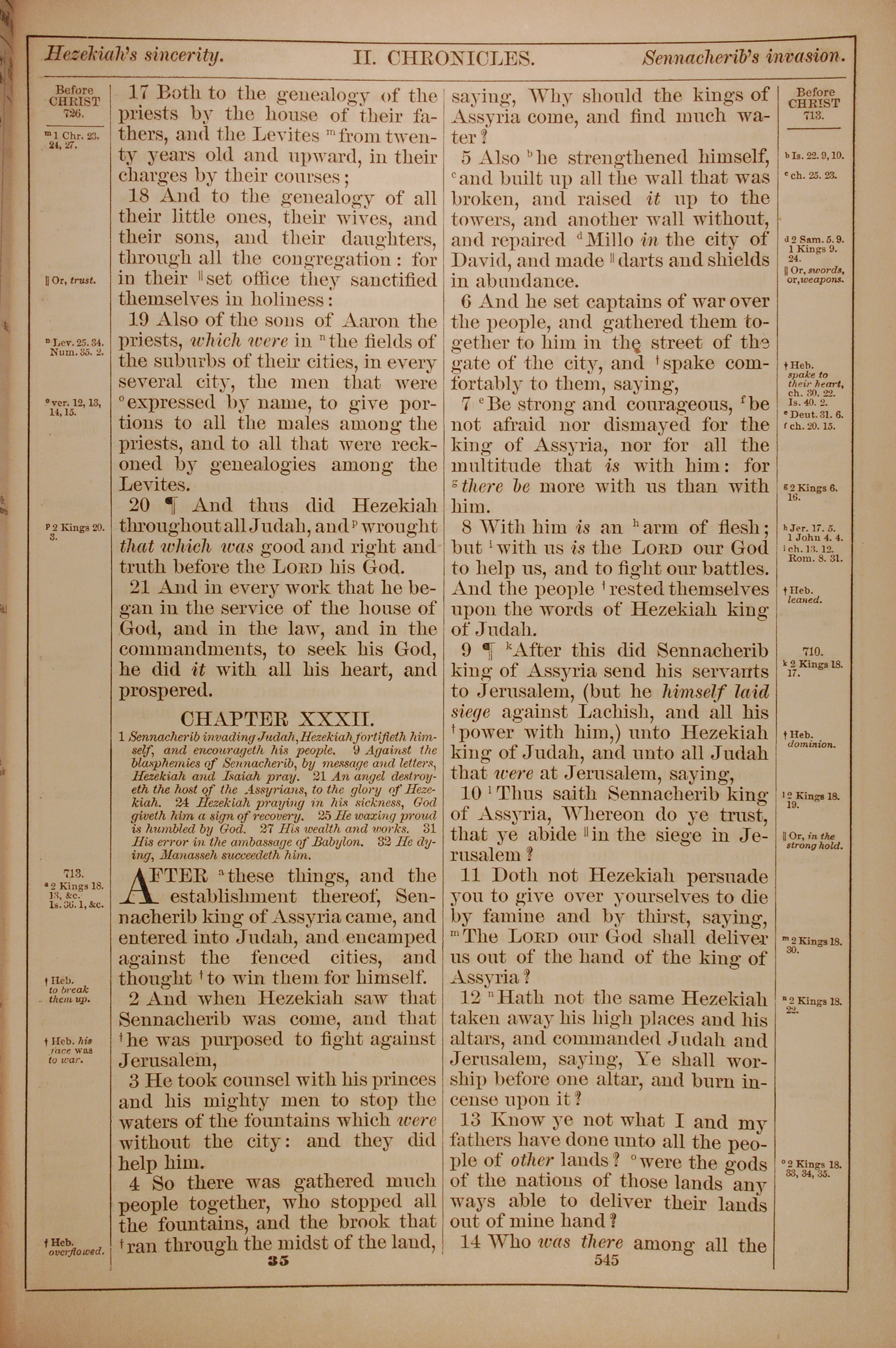 1882年Holy Bible 歷代志下 31 章 17 節到 32 章 14 節
