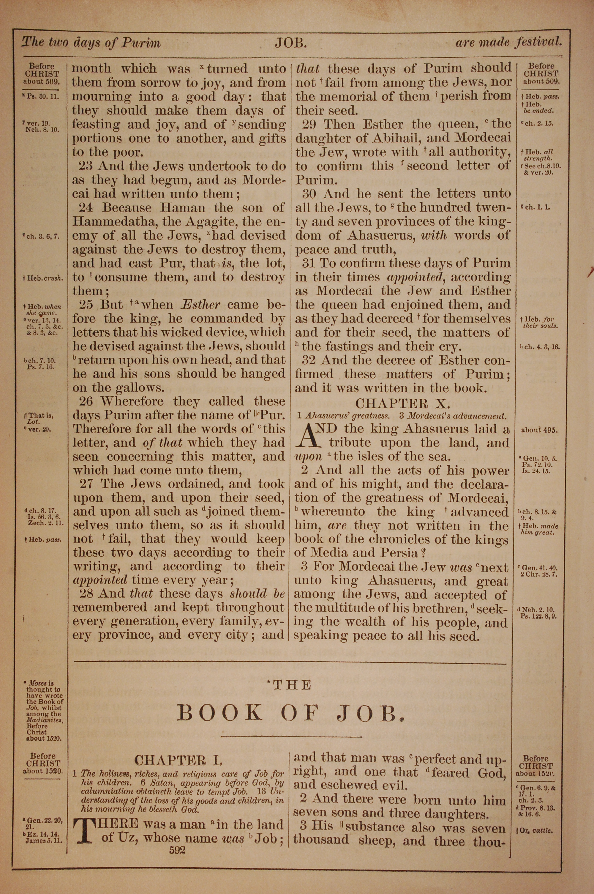 1882年Holy Bible 約伯記 1 章 1 節到 1 章 3 節