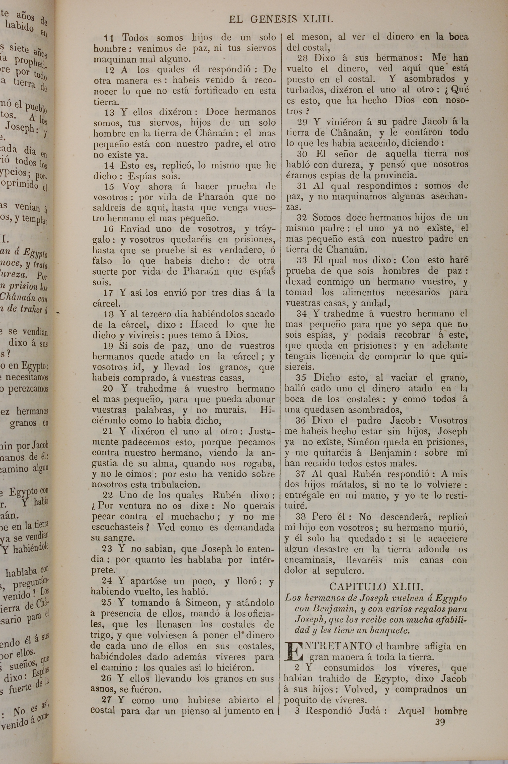 1858年La Biblia 創世記 42 章 11 節到 43 章 3 節
