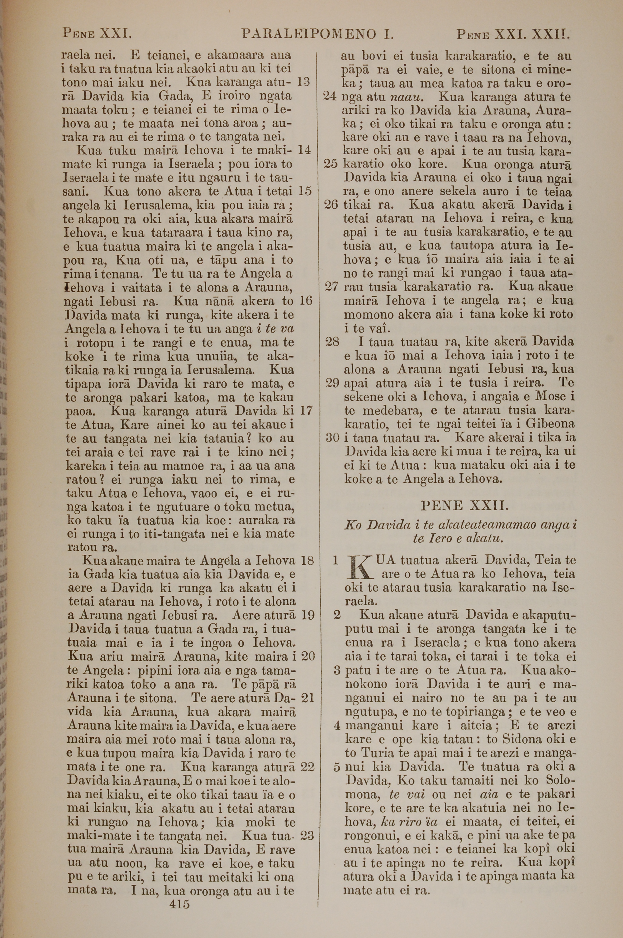 1851年BIBILA TAPU RA 歷代志上 21 章 13 節到 22 章 5 節