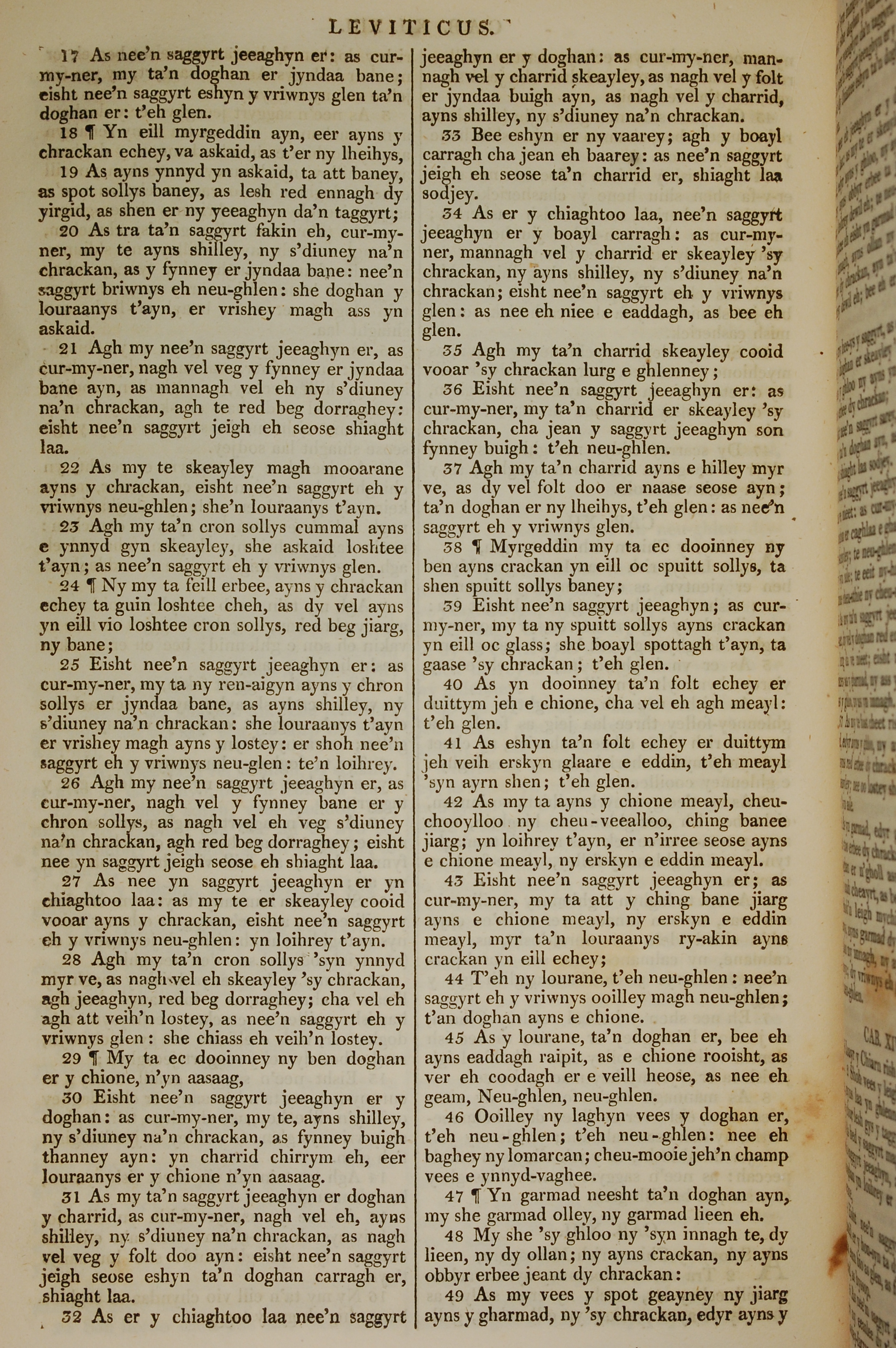 1819年曼島語聖經 利未記 13 章 17 節到 13 章 49 節