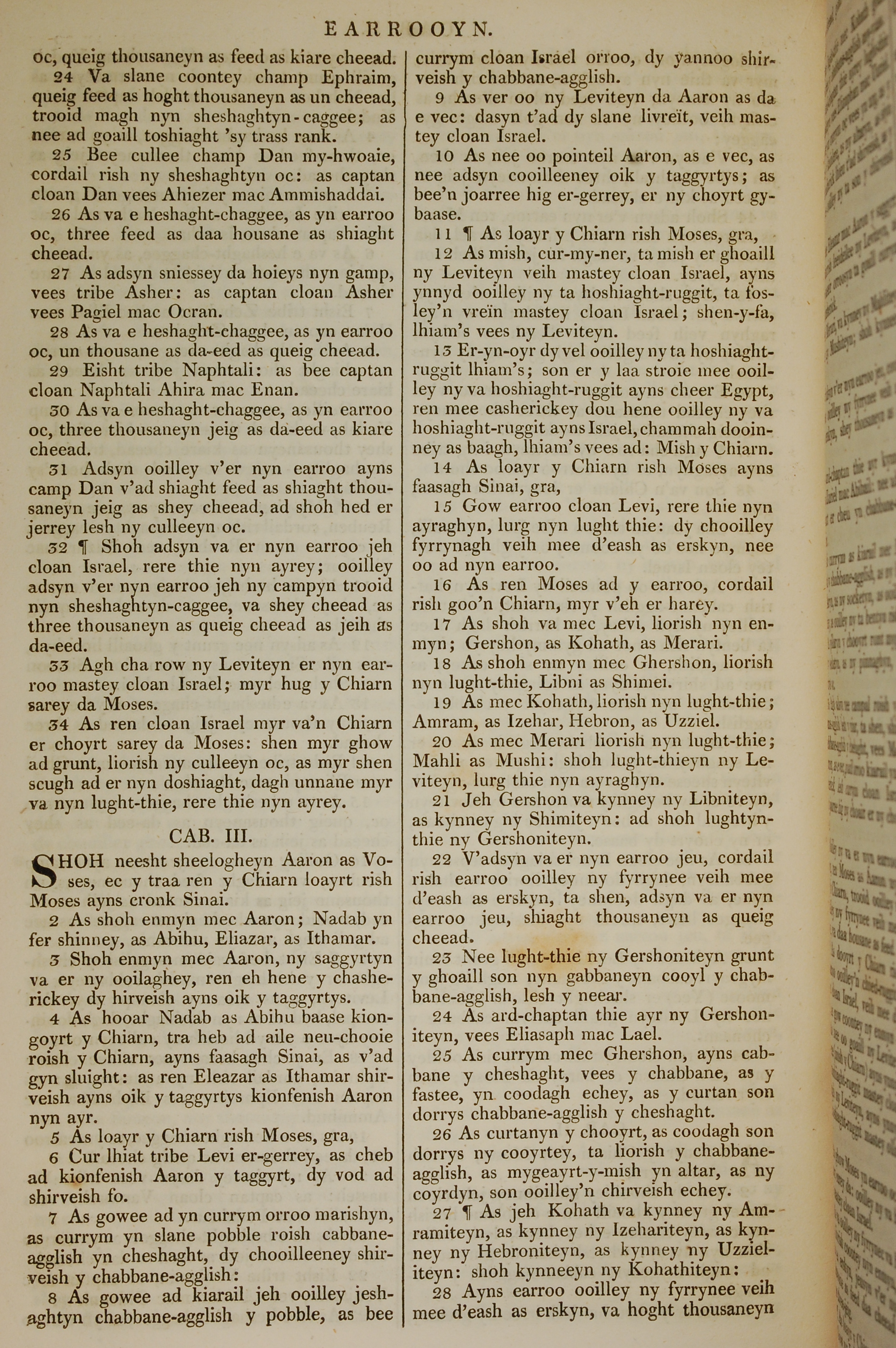 1819年曼島語聖經 民數記 2 章 24 節到 3 章 28 節