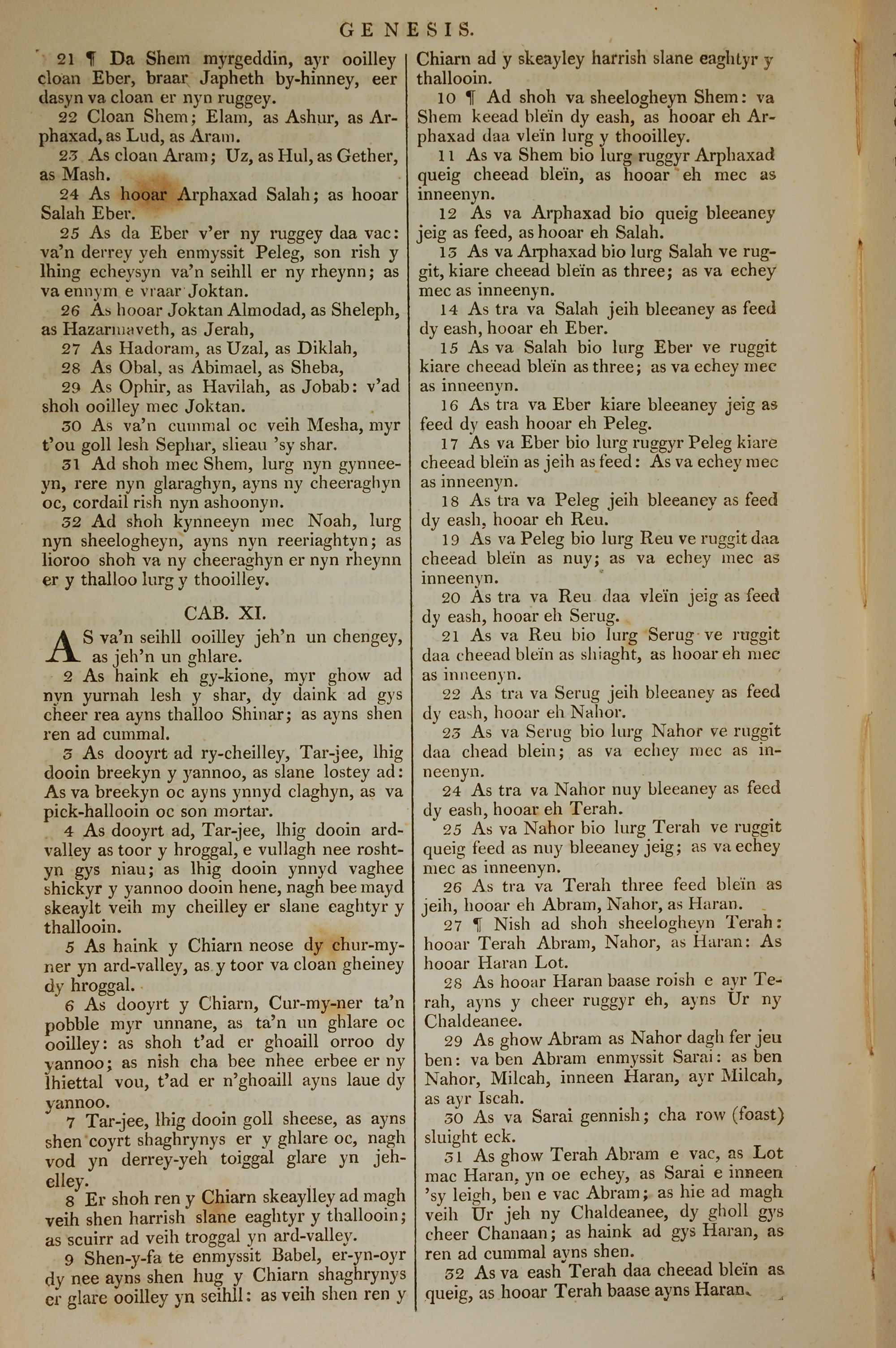 1819年曼島語聖經 創世記 10 章 21 節到 11 章 52 節