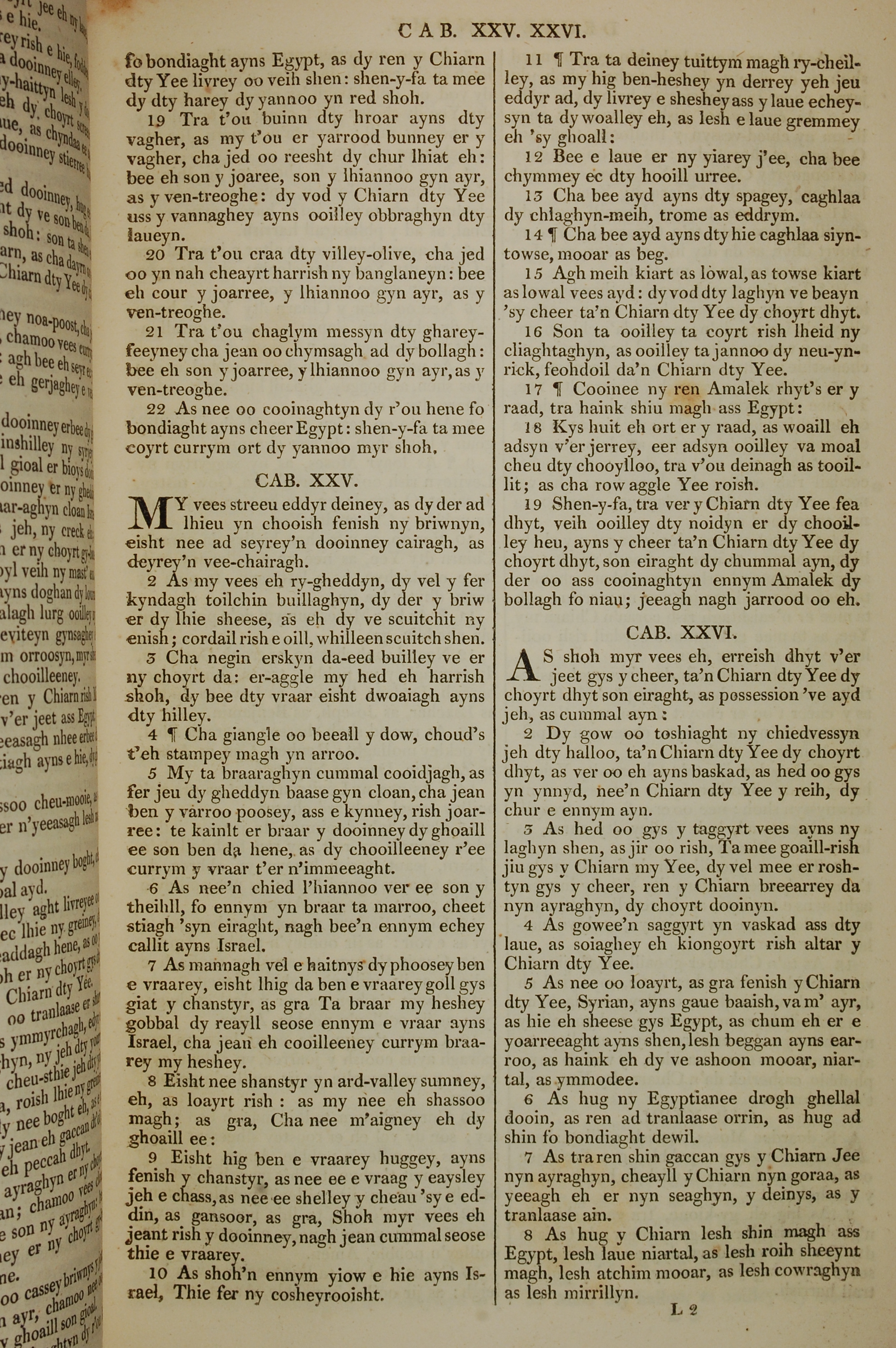 1819年曼島語聖經 申命記 24 章 19 節到 26 章 8 節
