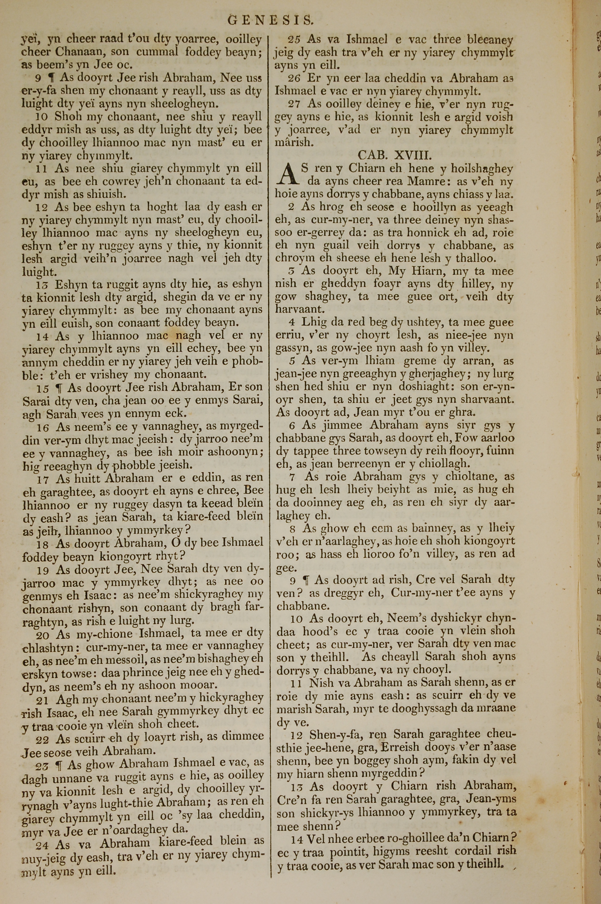 1819年曼島語聖經 創世記 17 章 9 節到 18 章 14 節