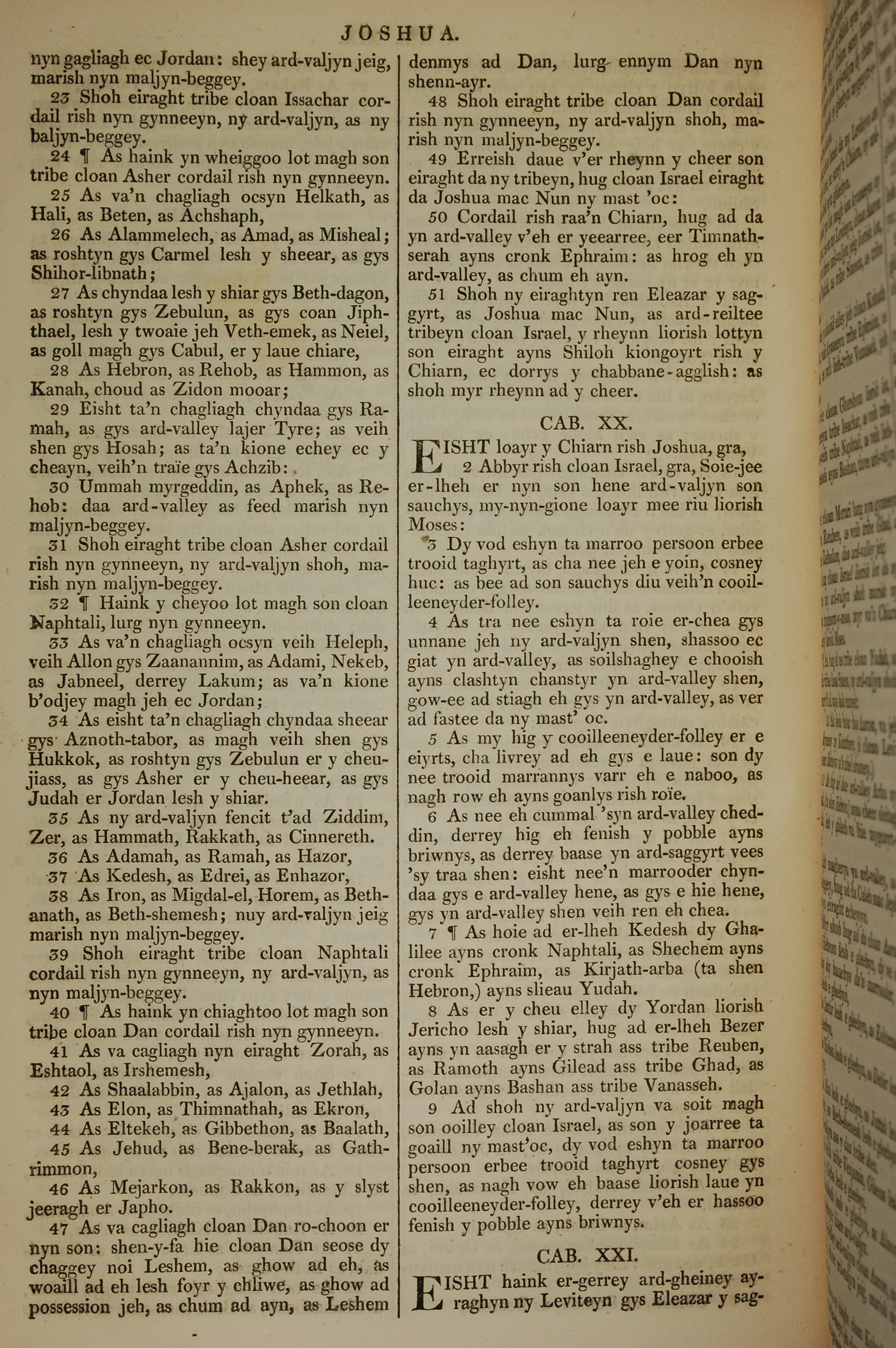 1819年曼島語聖經 約書亞記 19 章 23 節到 21 章 1 節