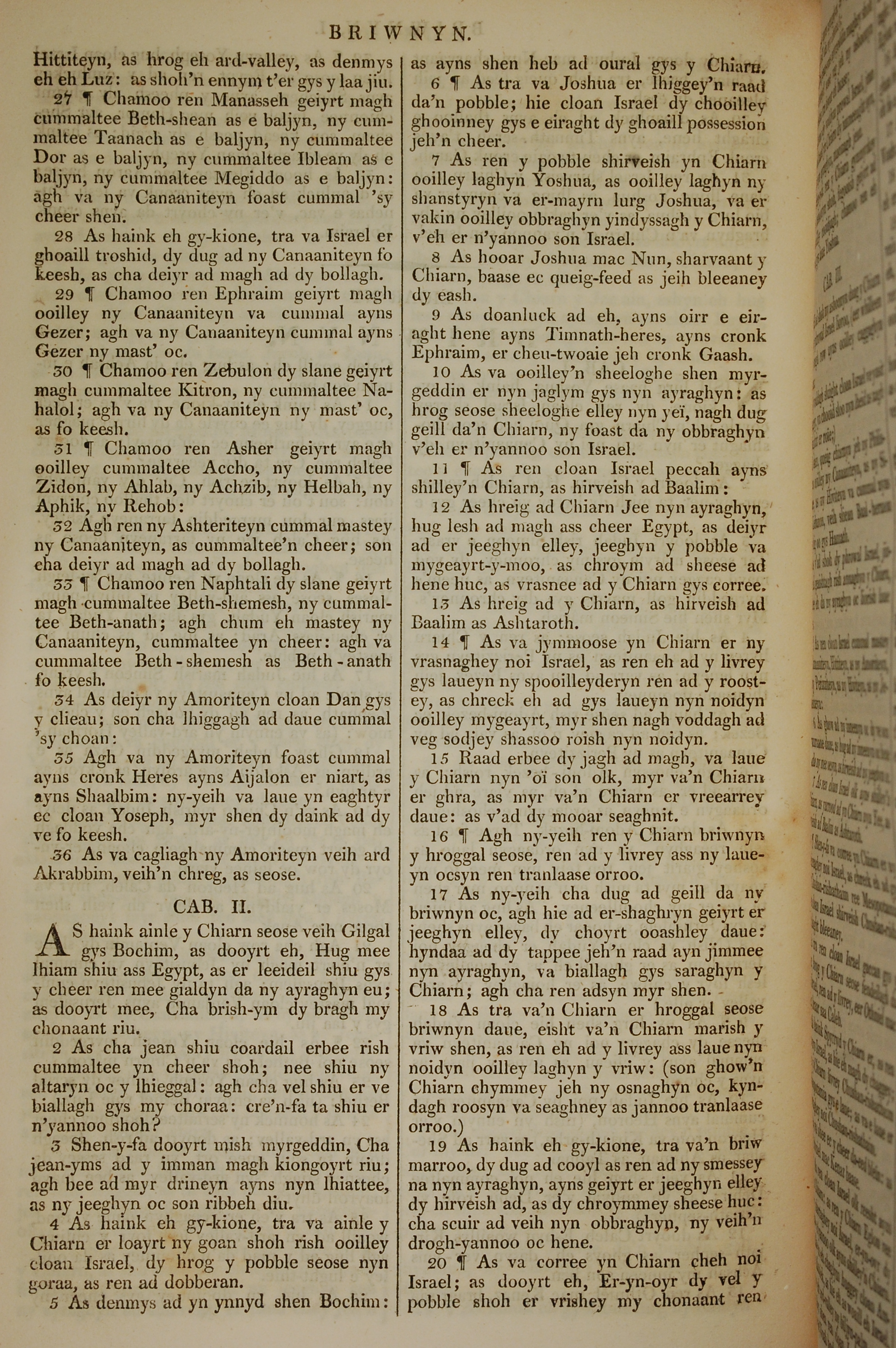 1819年曼島語聖經 士師記 1 章 27 節到 2 章 20 節