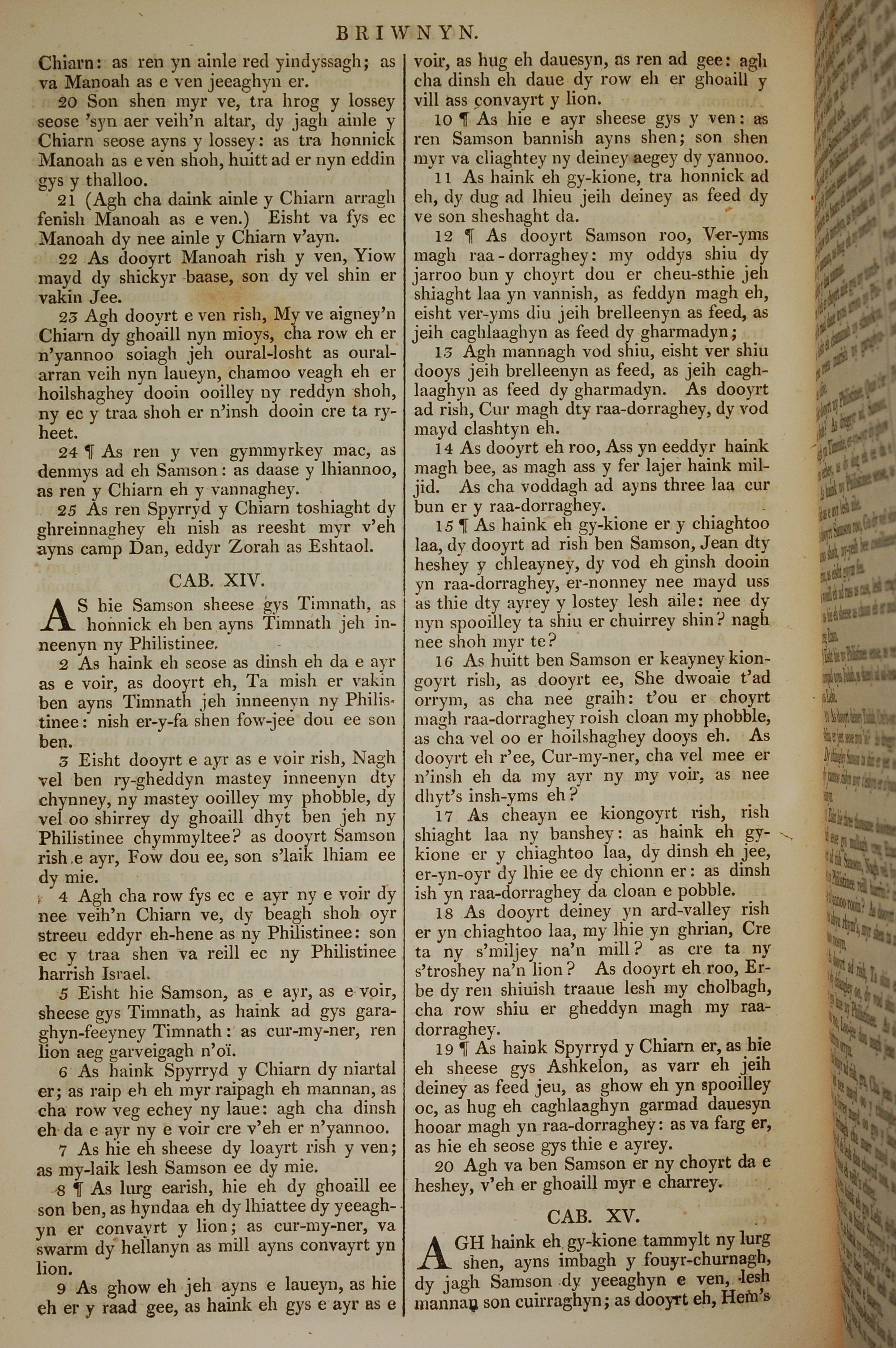 1819年曼島語聖經 士師記 13 章 20 節到 15 章 1 節