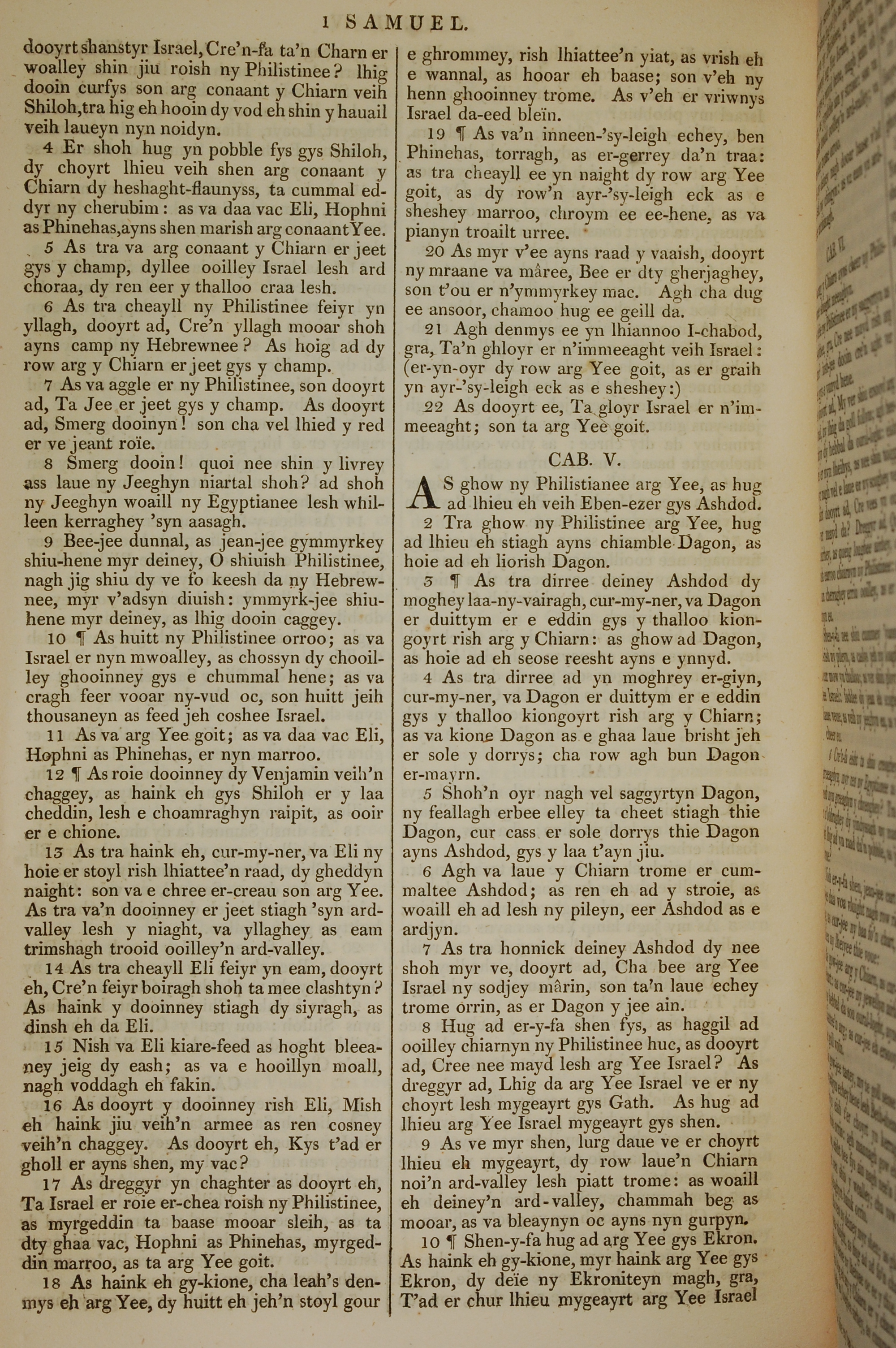 1819年曼島語聖經 撒母耳記上 4 章 4 節到 5 章 10 節