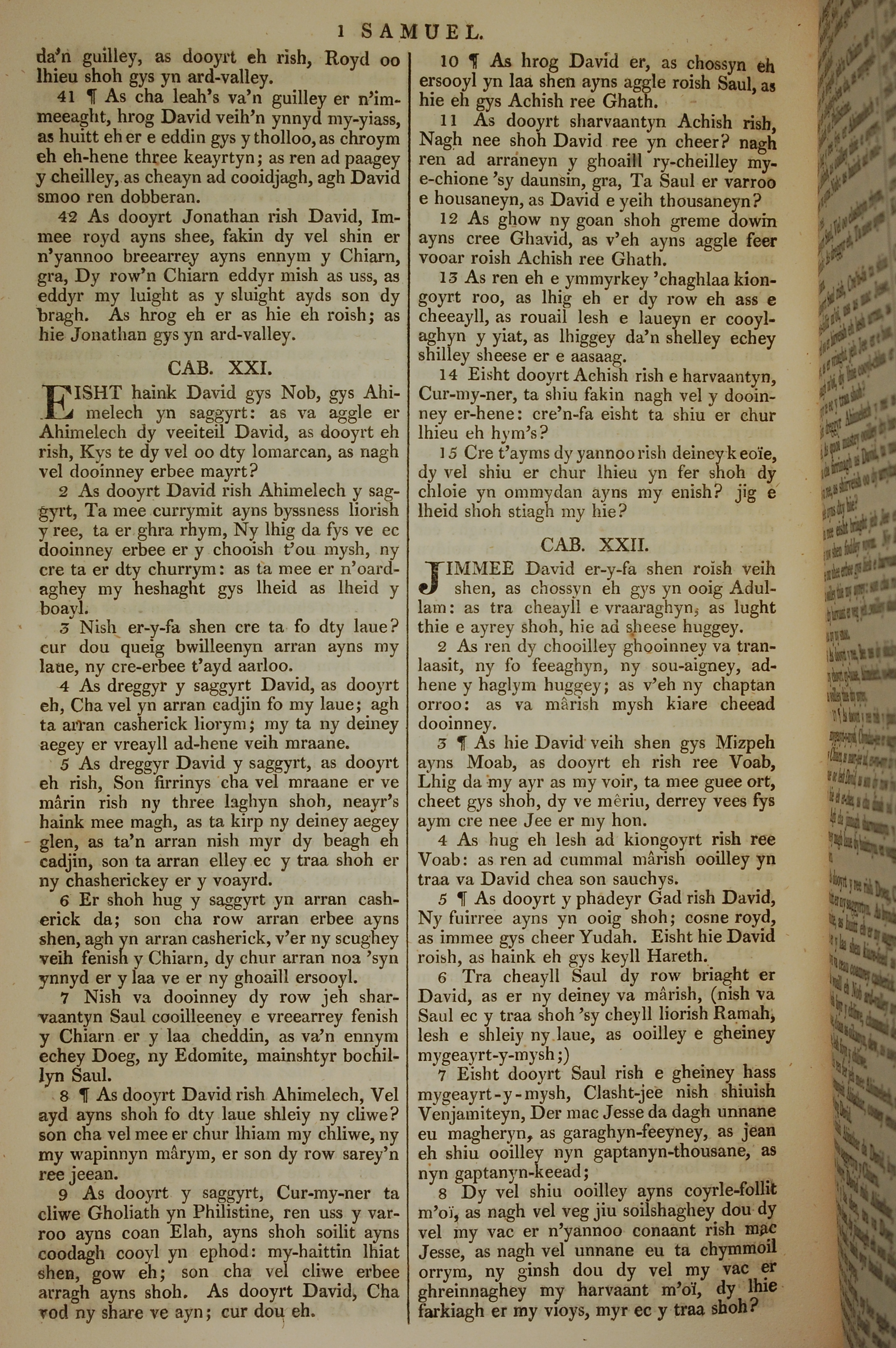 1819年曼島語聖經 撒母耳記上 20 章 41 節到 22 章 8 節