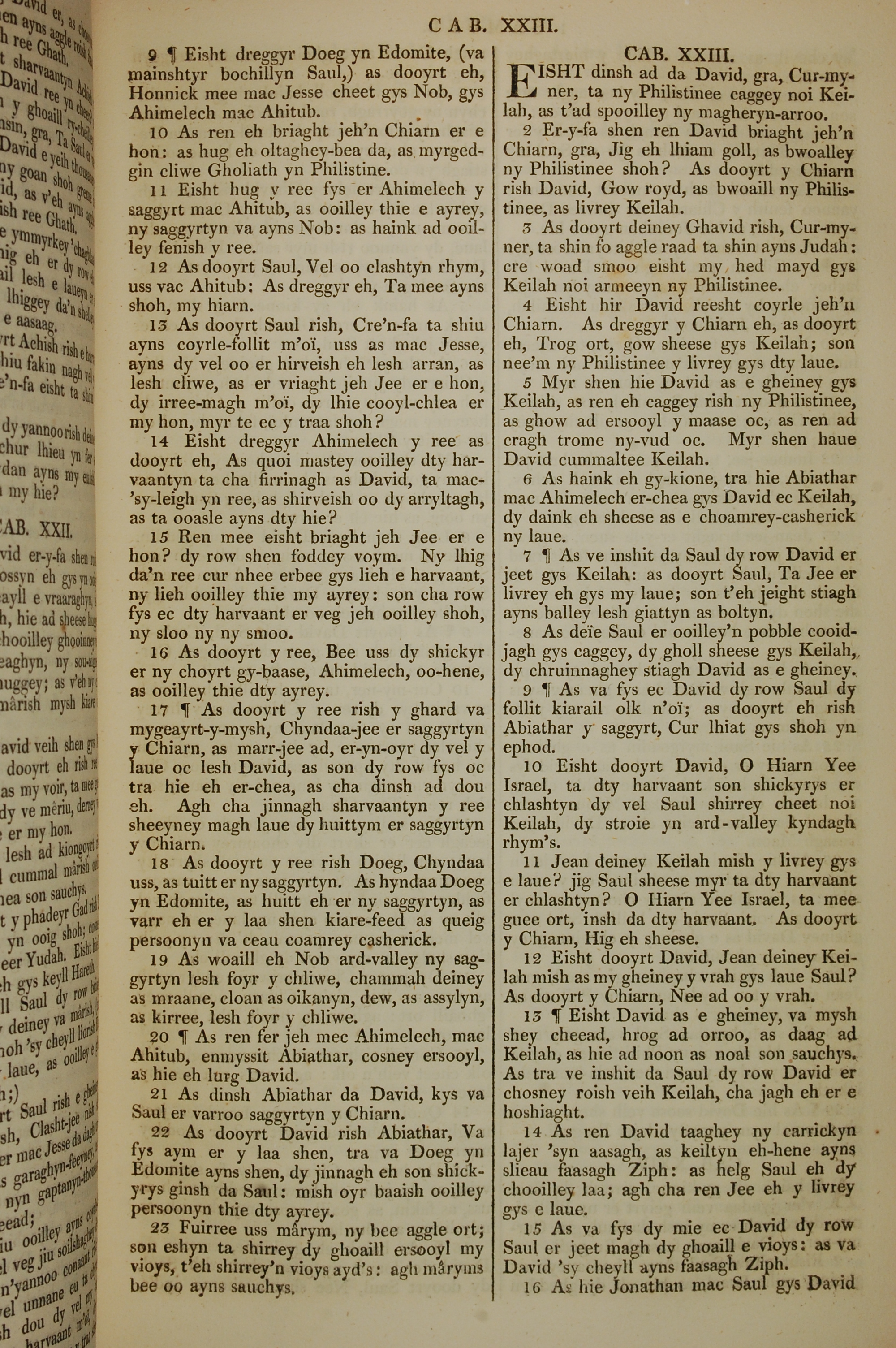1819年曼島語聖經 撒母耳記上 22 章 9 節到 23 章 16 節