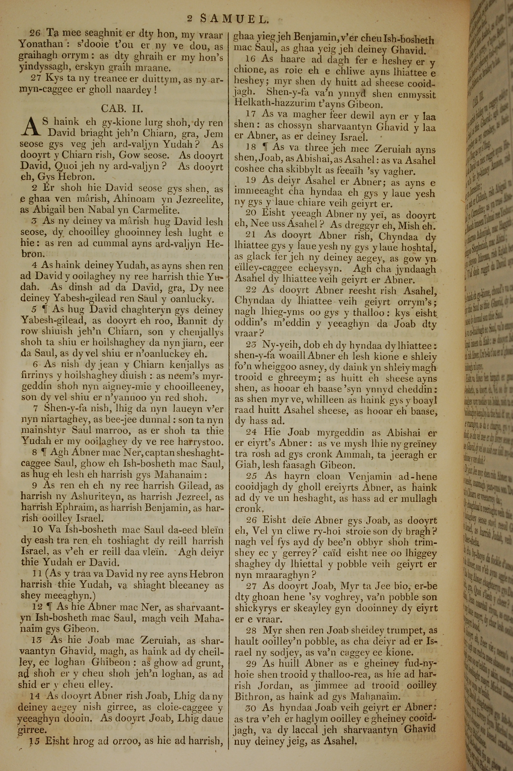 1819年曼島語聖經 撒母耳記下 1 章 26 節到 2 章 30 節