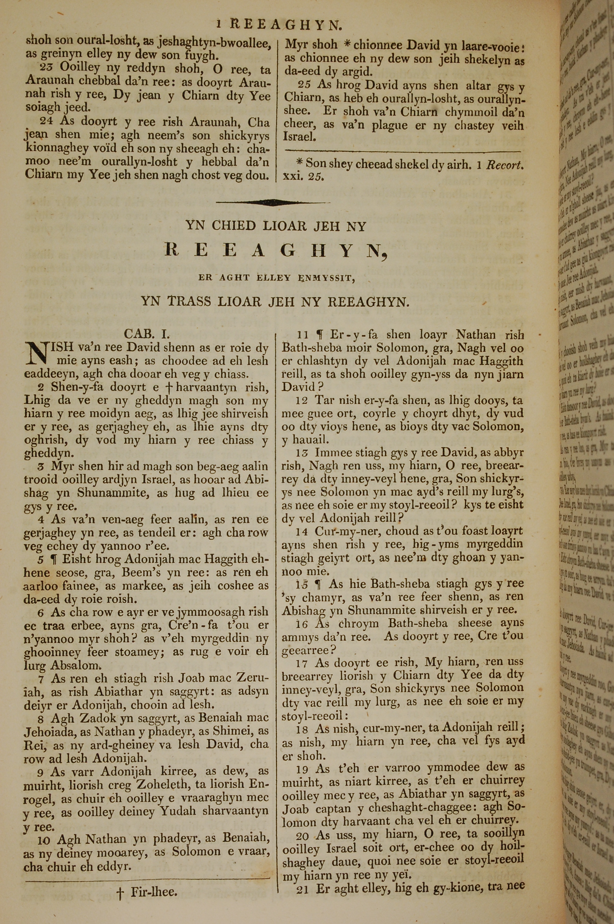 1819年曼島語聖經 列王紀上 1 章 1 節到 1 章 21 節