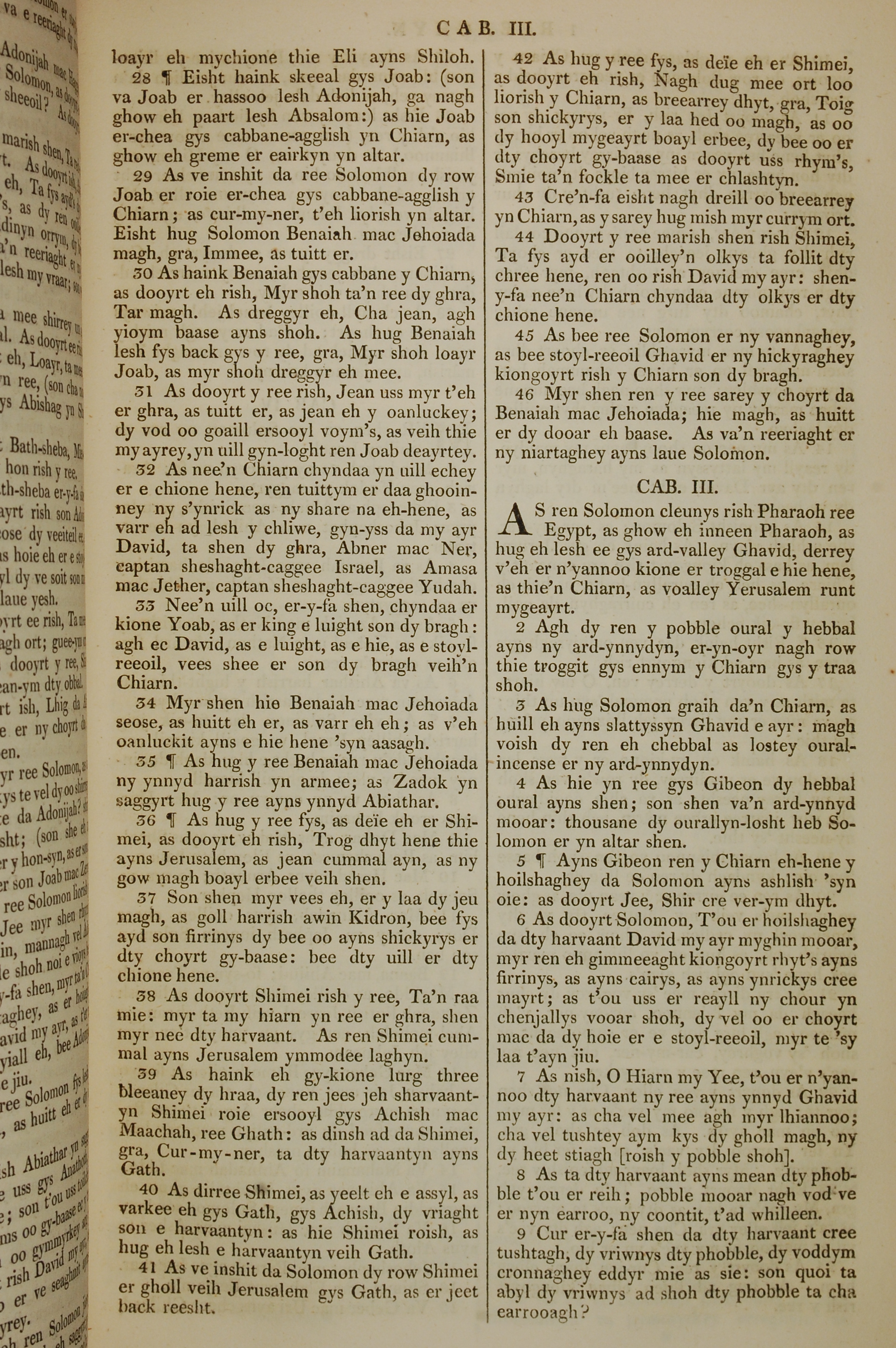 1819年曼島語聖經 列王紀上 2 章 28 節到 3 章 9 節