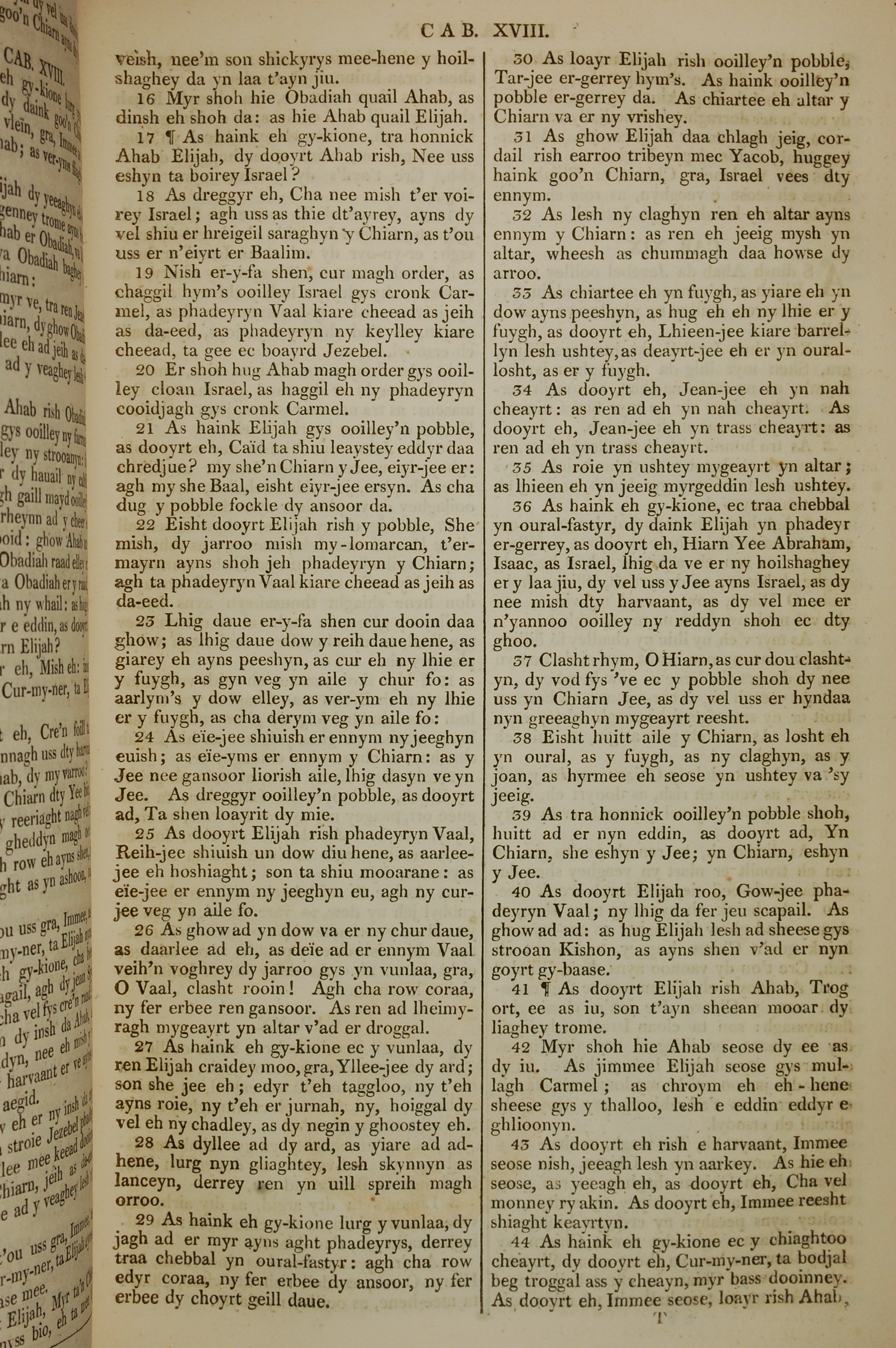 1819年曼島語聖經 列王紀上 18 章 16 節到 18 章 44 節