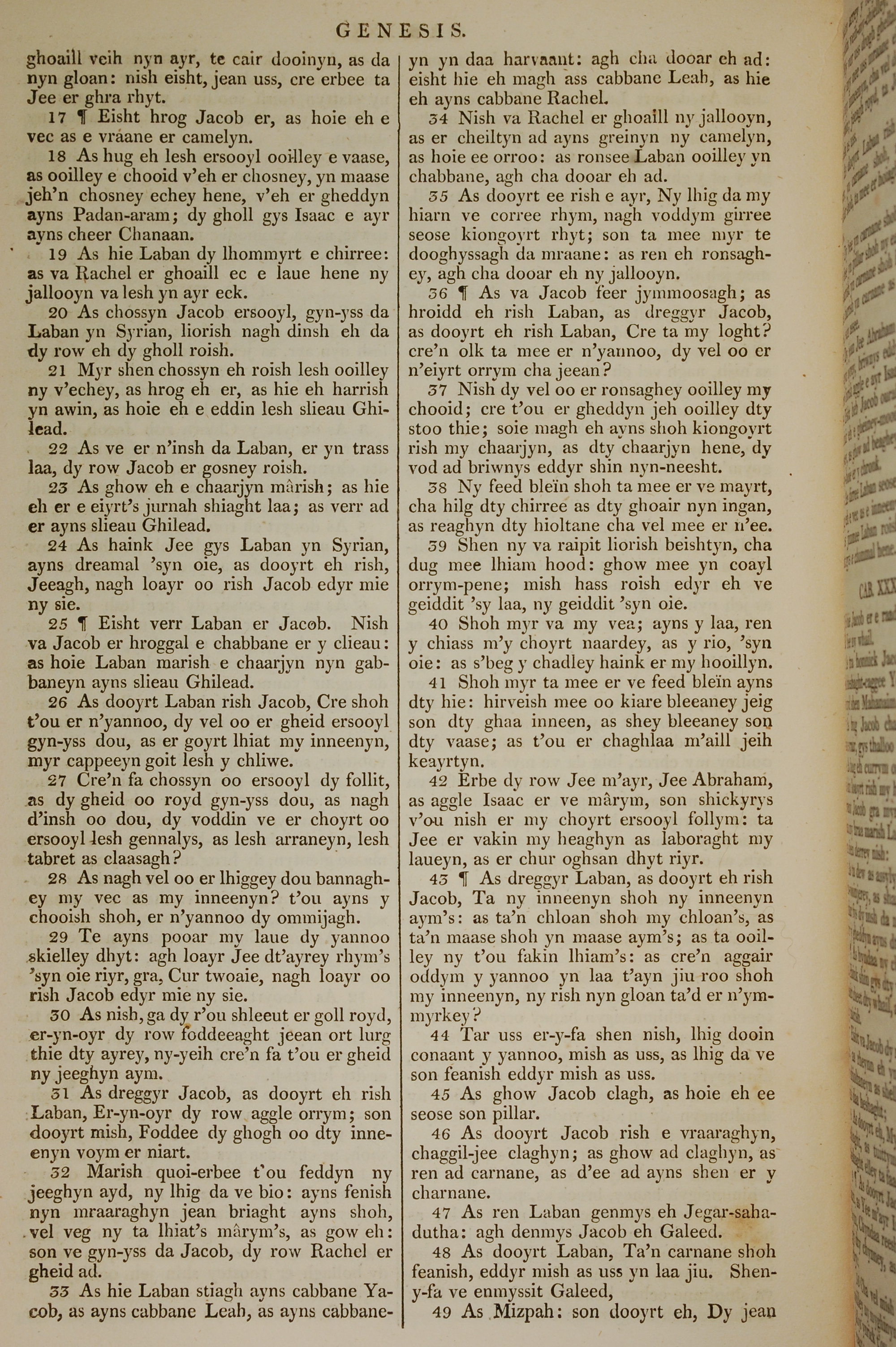 1819年曼島語聖經 創世記 31 章 17 節到 31 章 49 節
