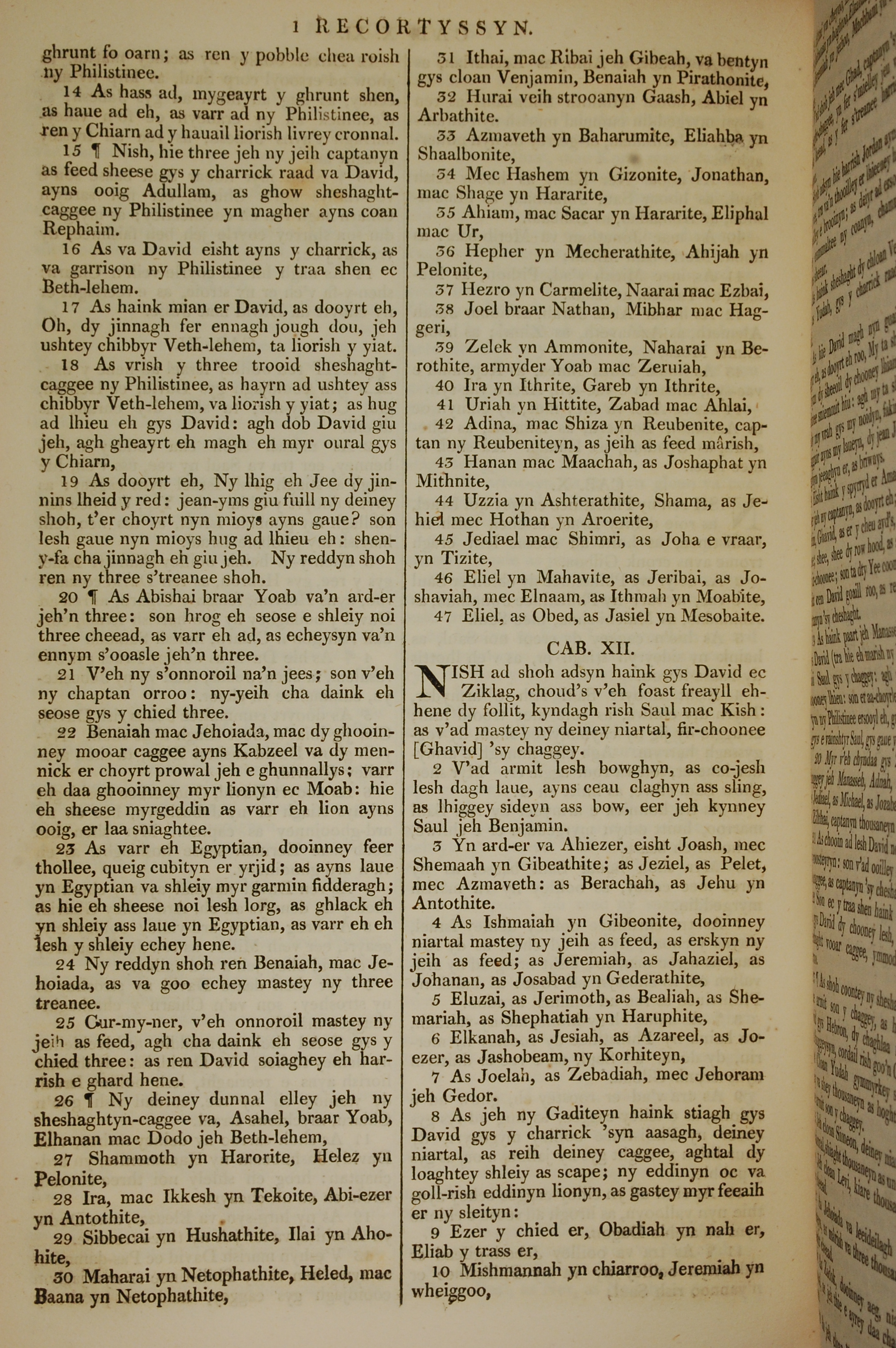 1819年曼島語聖經 歷代志上 11 章 14 節到 12 章 10 節