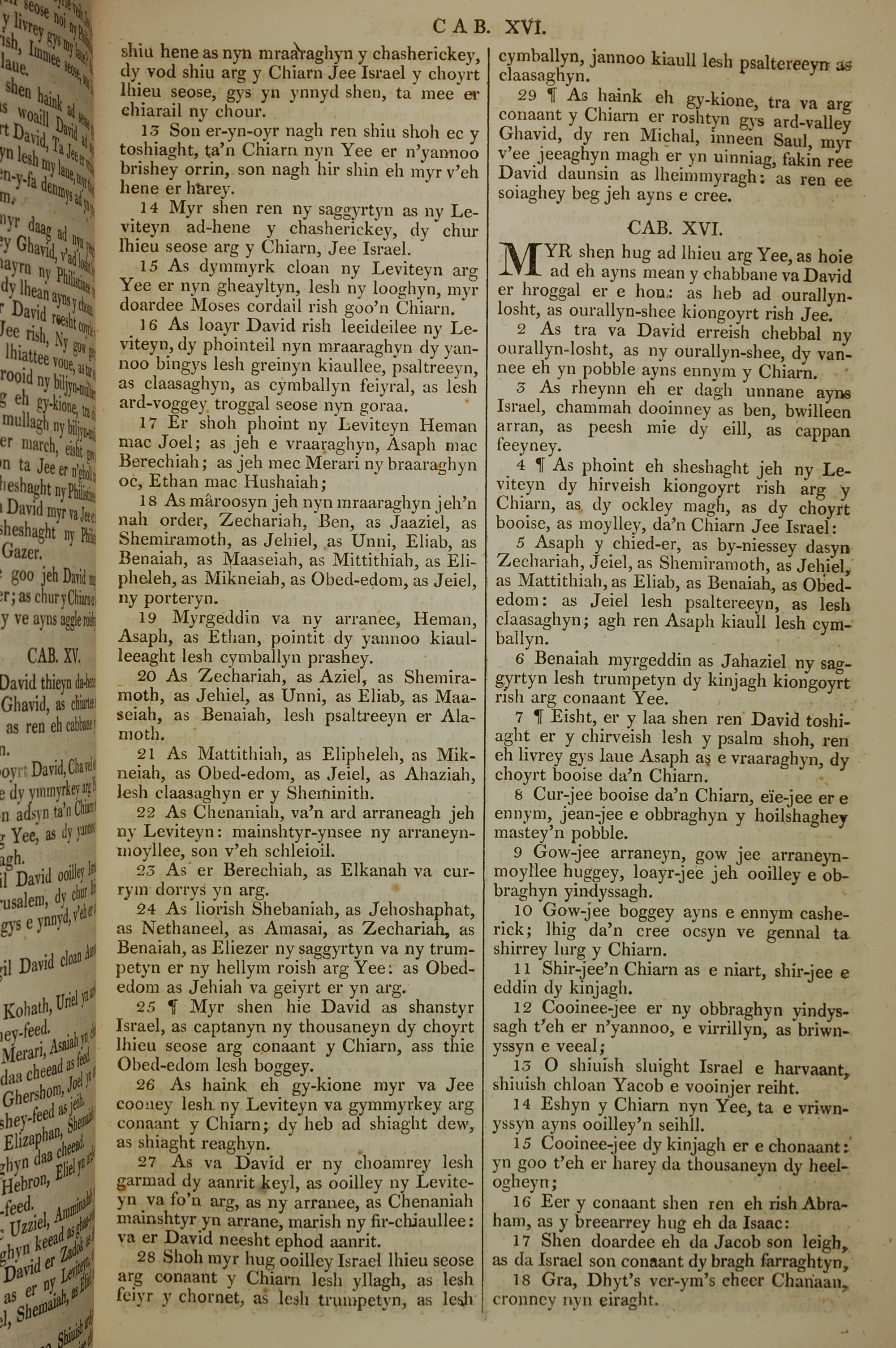 1819年曼島語聖經 歷代志上 15 章 13 節到 16 章 18 節
