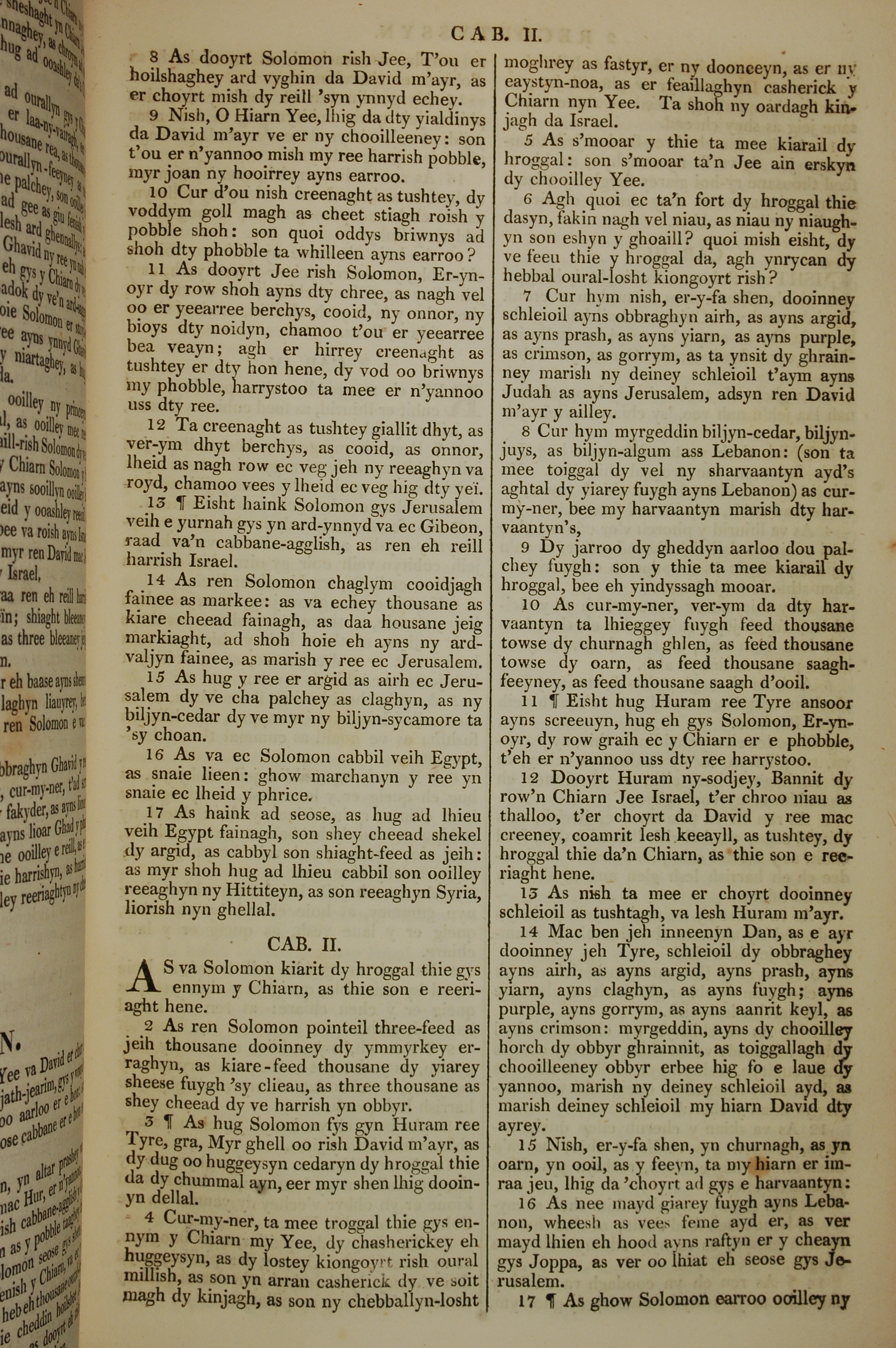 1819年曼島語聖經 歷代志下 1 章 8 節到 2 章 17 節