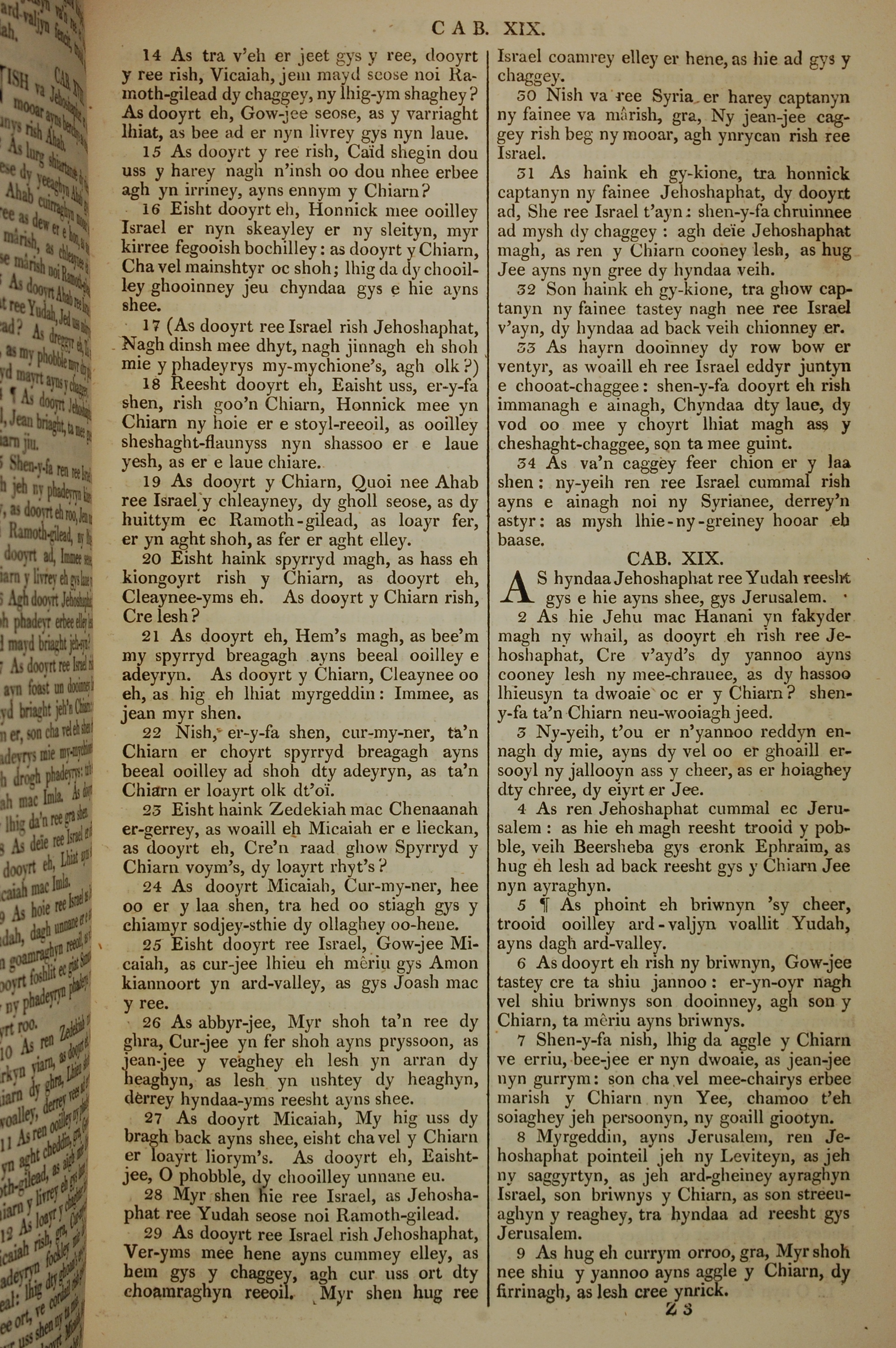 1819年曼島語聖經 歷代志下 18 章 14 節到 19 章 9 節