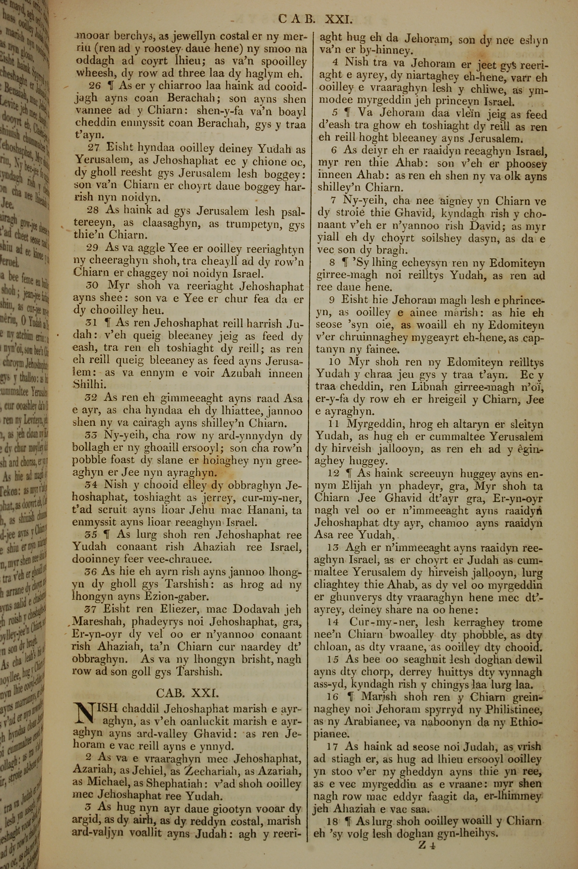 1819年曼島語聖經 歷代志下 20 章 26 節到 21 章 18 節