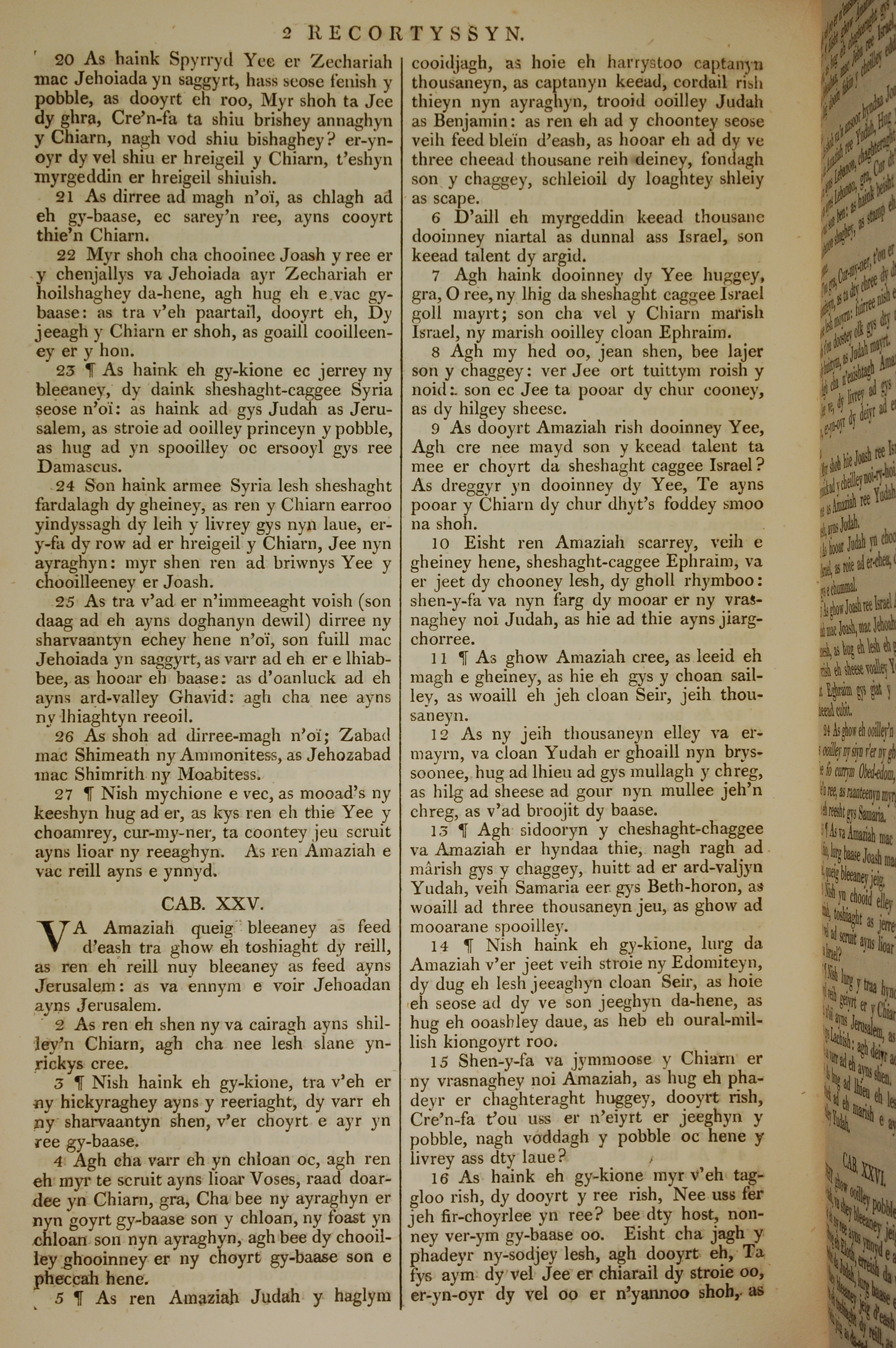 1819年曼島語聖經 歷代志下 24 章 20 節到 25 章 16 節