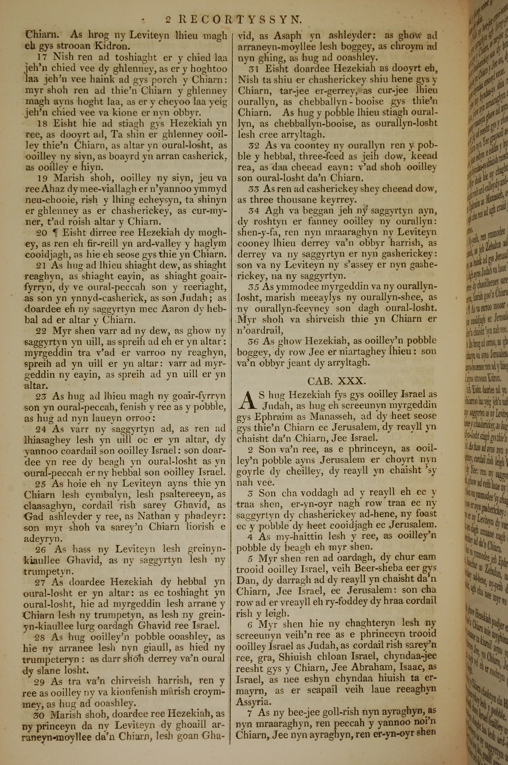 1819年曼島語聖經 歷代志下 29 章 17 節到 30 章 7 節