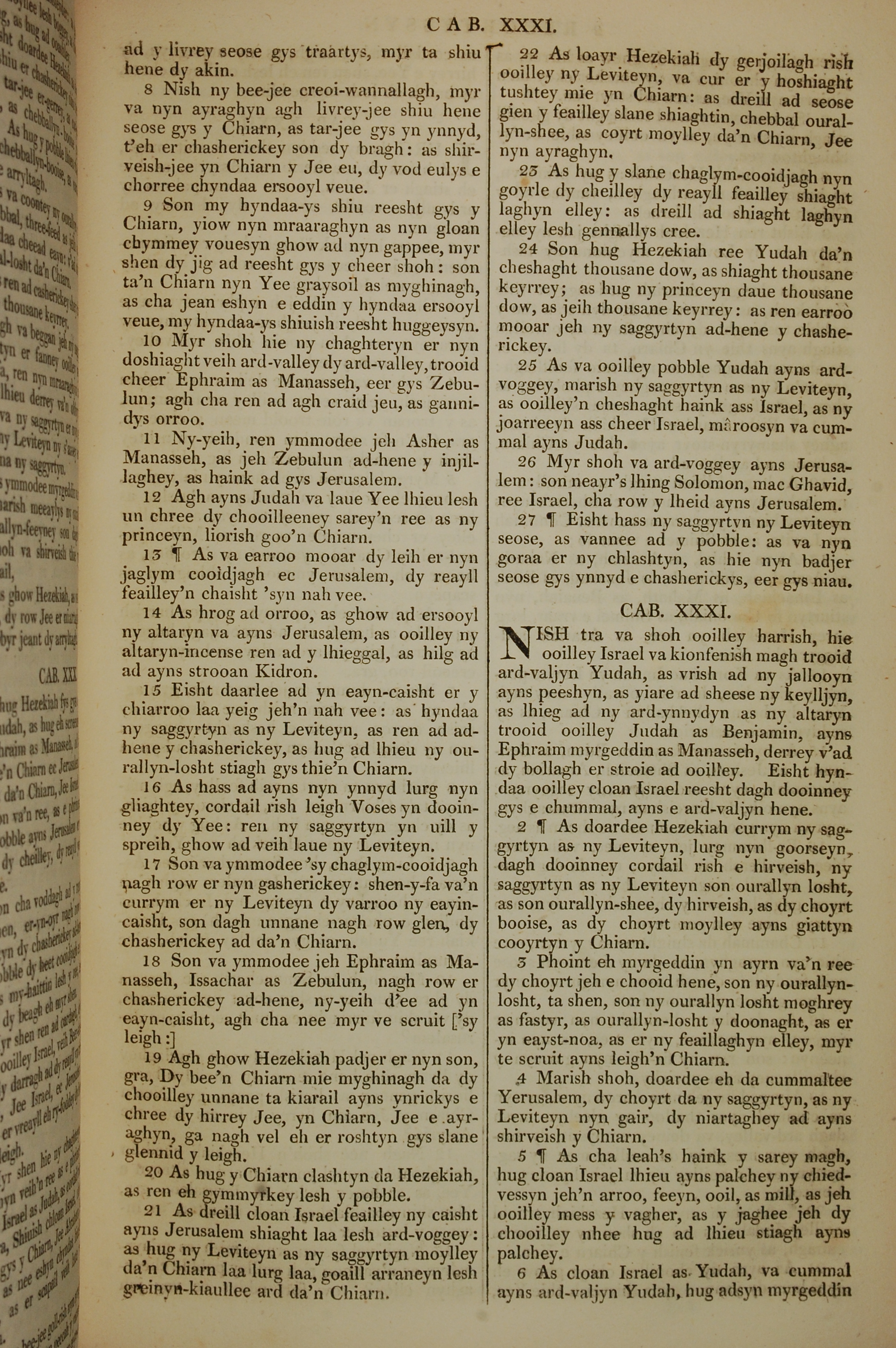 1819年曼島語聖經 歷代志下 30 章 8 節到 31 章 6 節