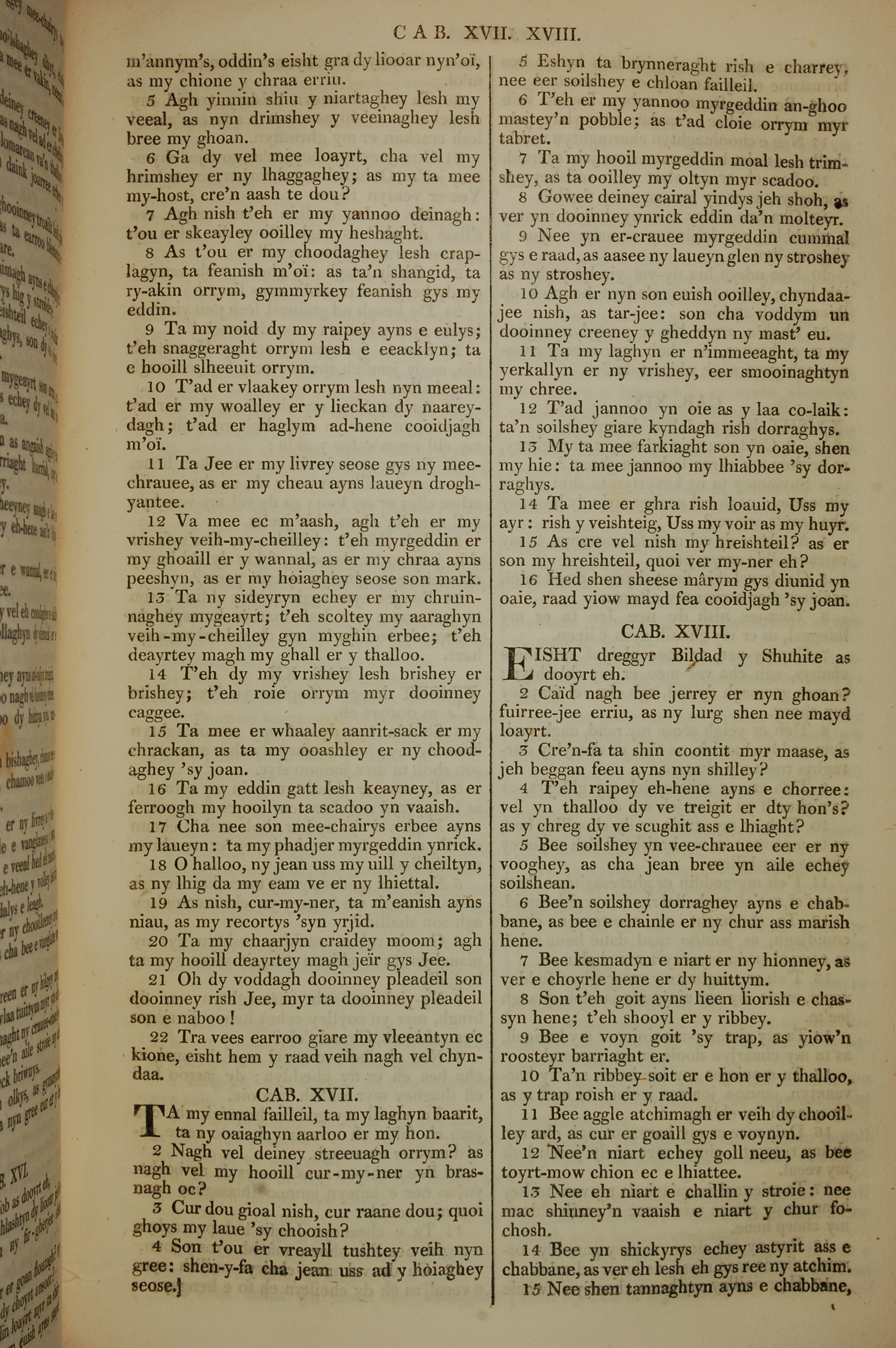 1819年曼島語聖經 約伯記 16 章 5 節到 18 章 15 節