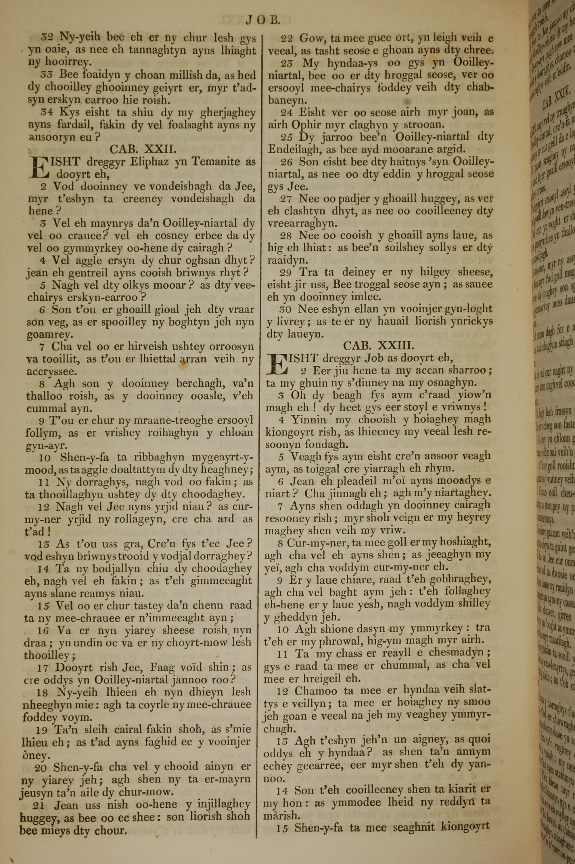 1819年曼島語聖經 約伯記 21 章 32 節到 23 章 15 節