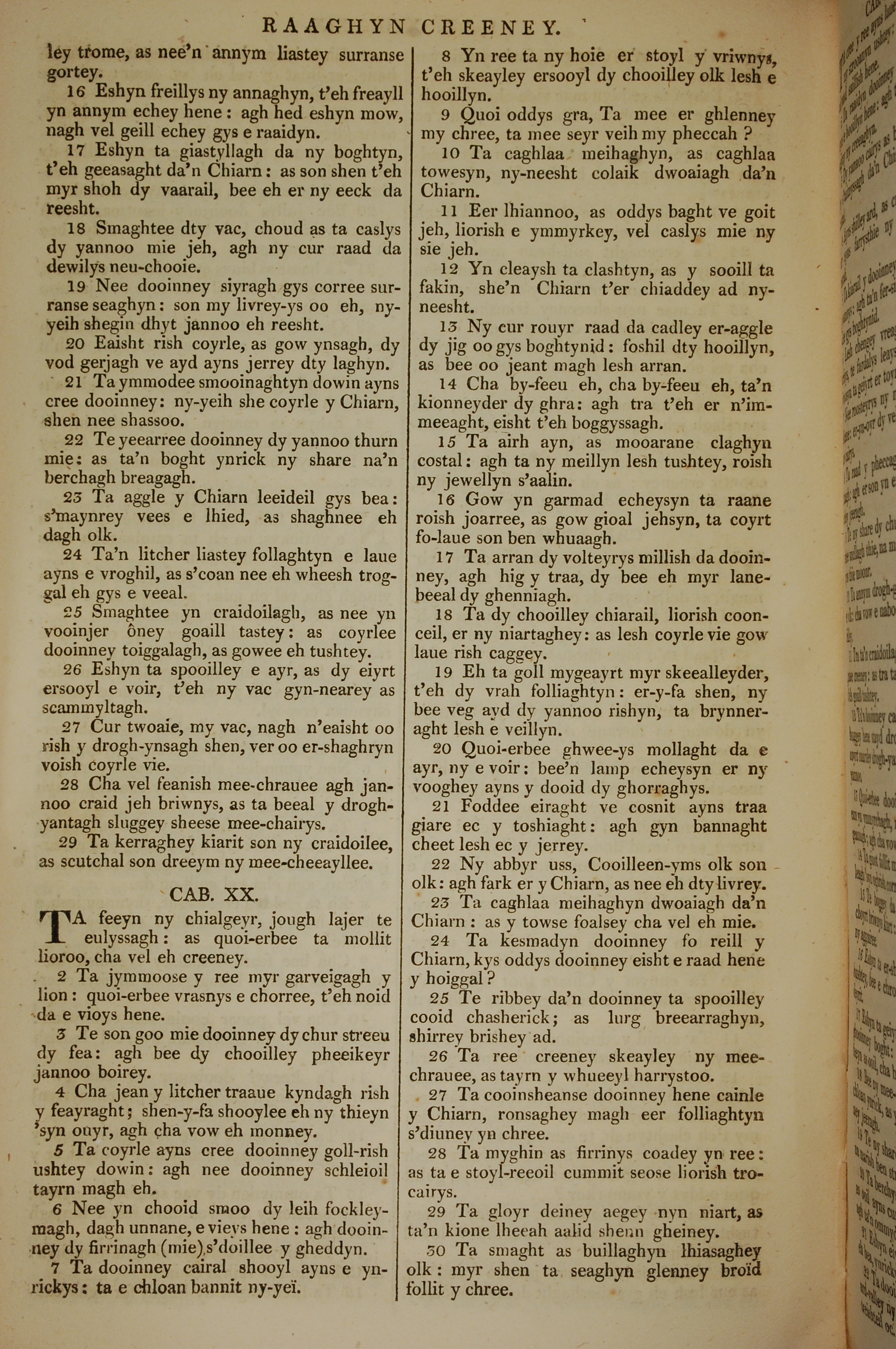 1819年曼島語聖經 箴言 19 章 16 節到 20 章 30 節