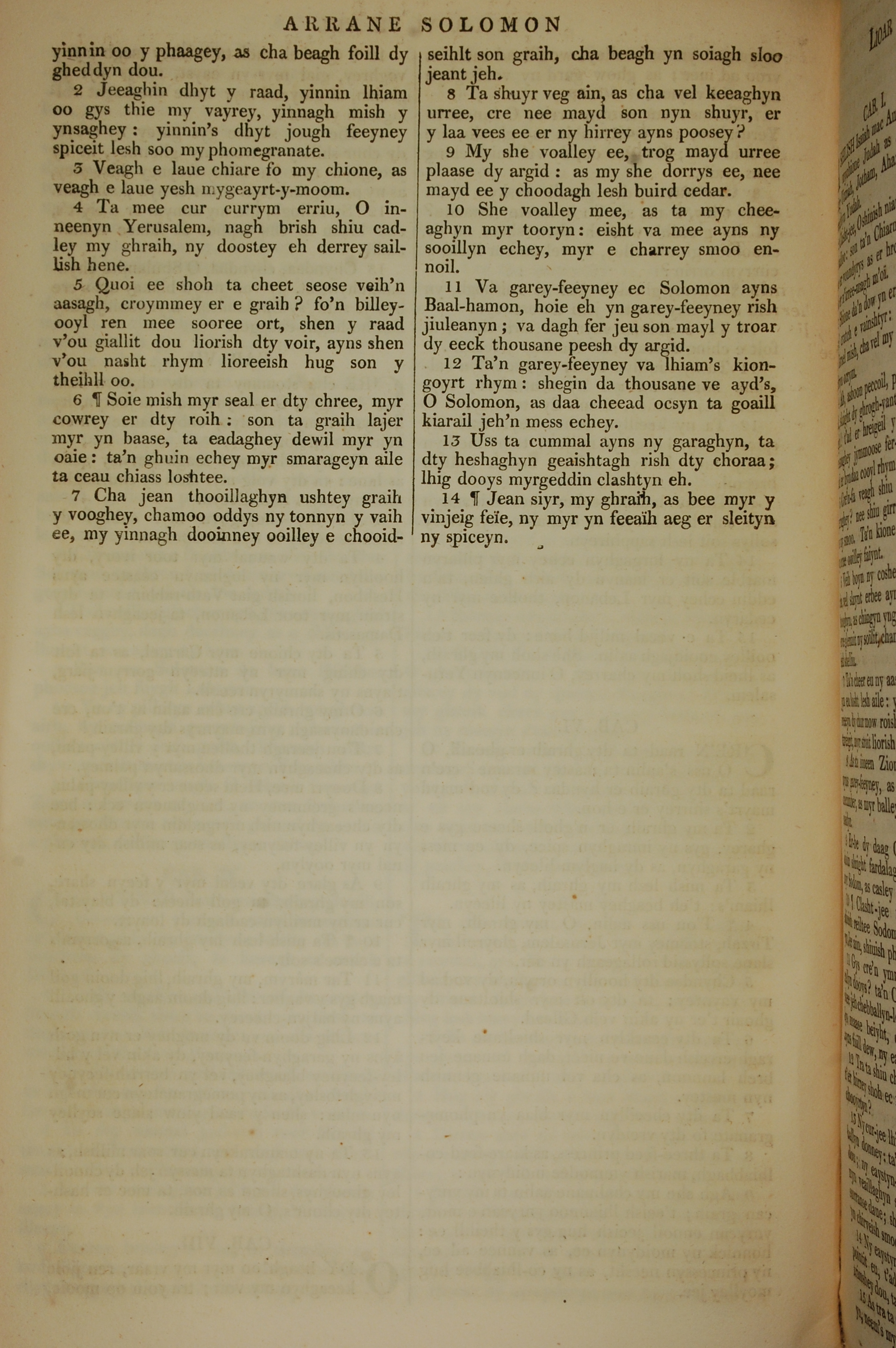 1819年曼島語聖經 雅歌 8 章 2 節到 8 章 14 節