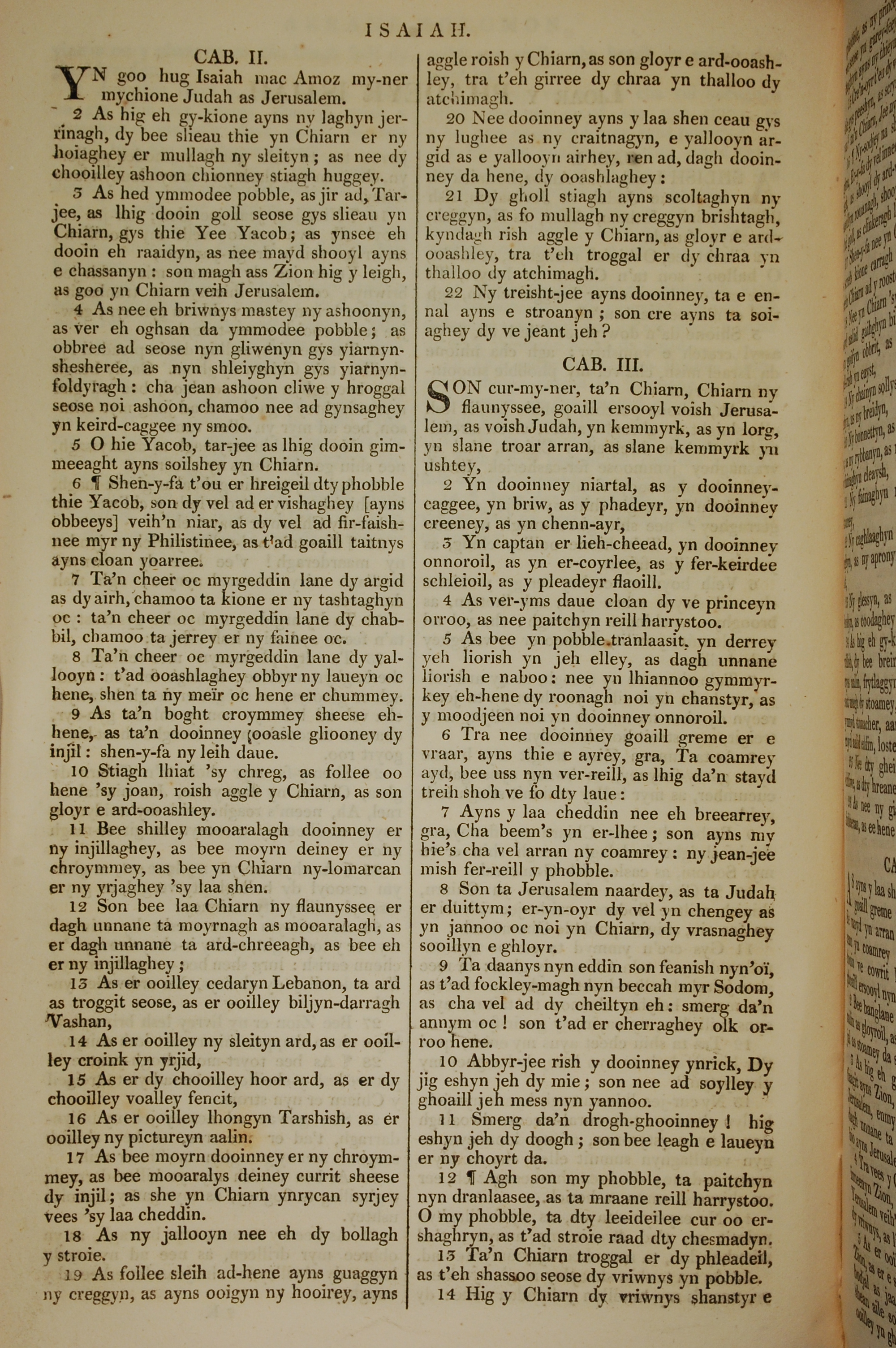 1819年曼島語聖經 以賽亞書 2 章 1 節到 3 章 14 節