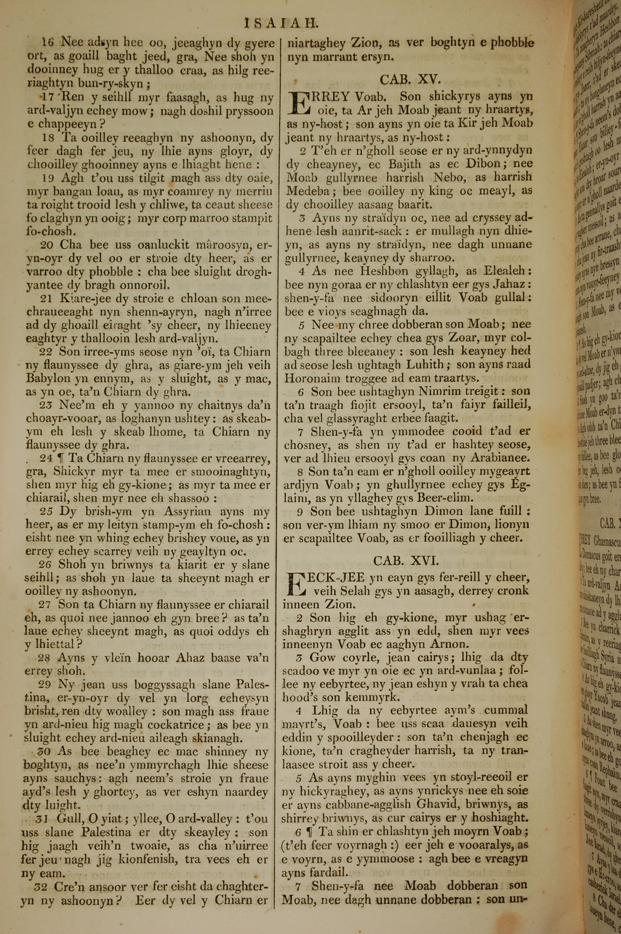 1819年曼島語聖經 以賽亞書 14 章 16 節到 16 章 7 節