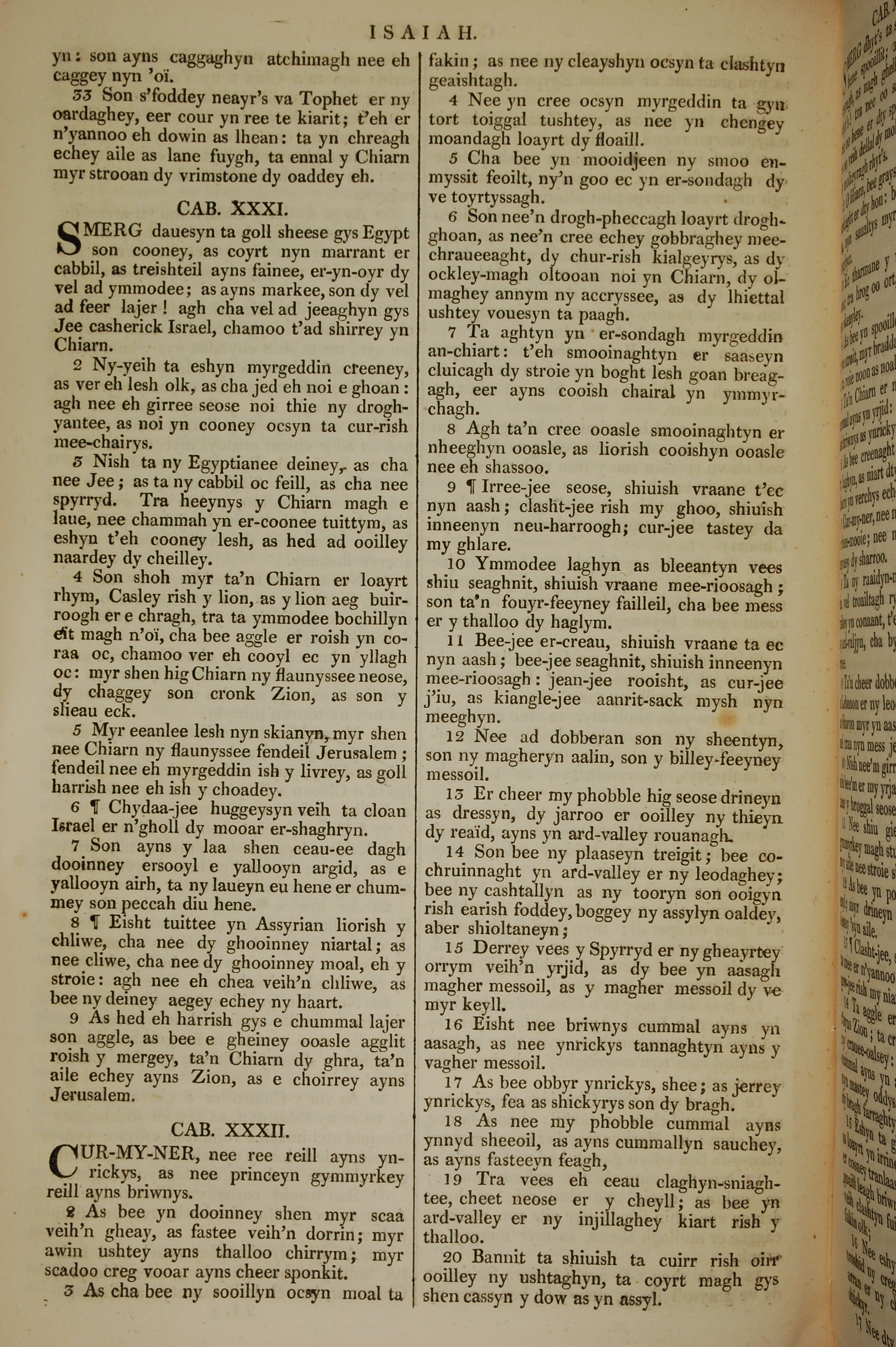 1819年曼島語聖經 以賽亞書 30 章 33 節到 32 章 20 節