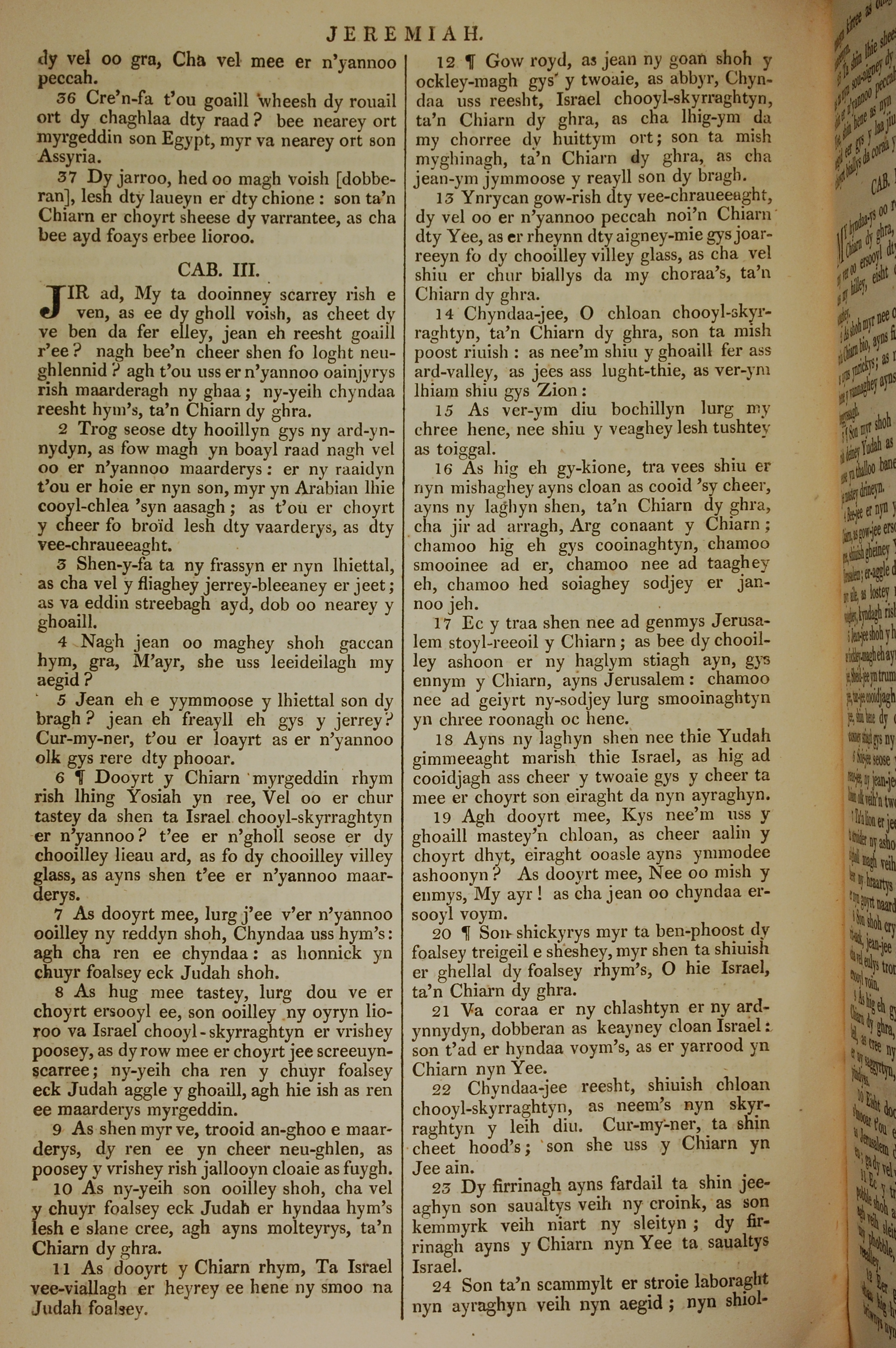 1819年曼島語聖經 耶利米書 2 章 36 節到 3 章 24 節