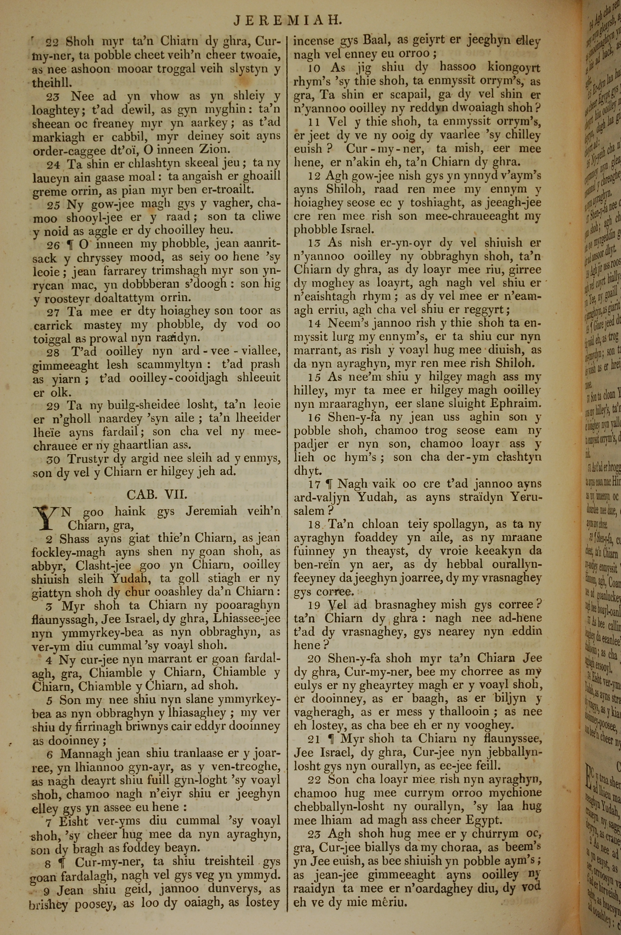 1819年曼島語聖經 耶利米書 6 章 22 節到 7 章 23 節