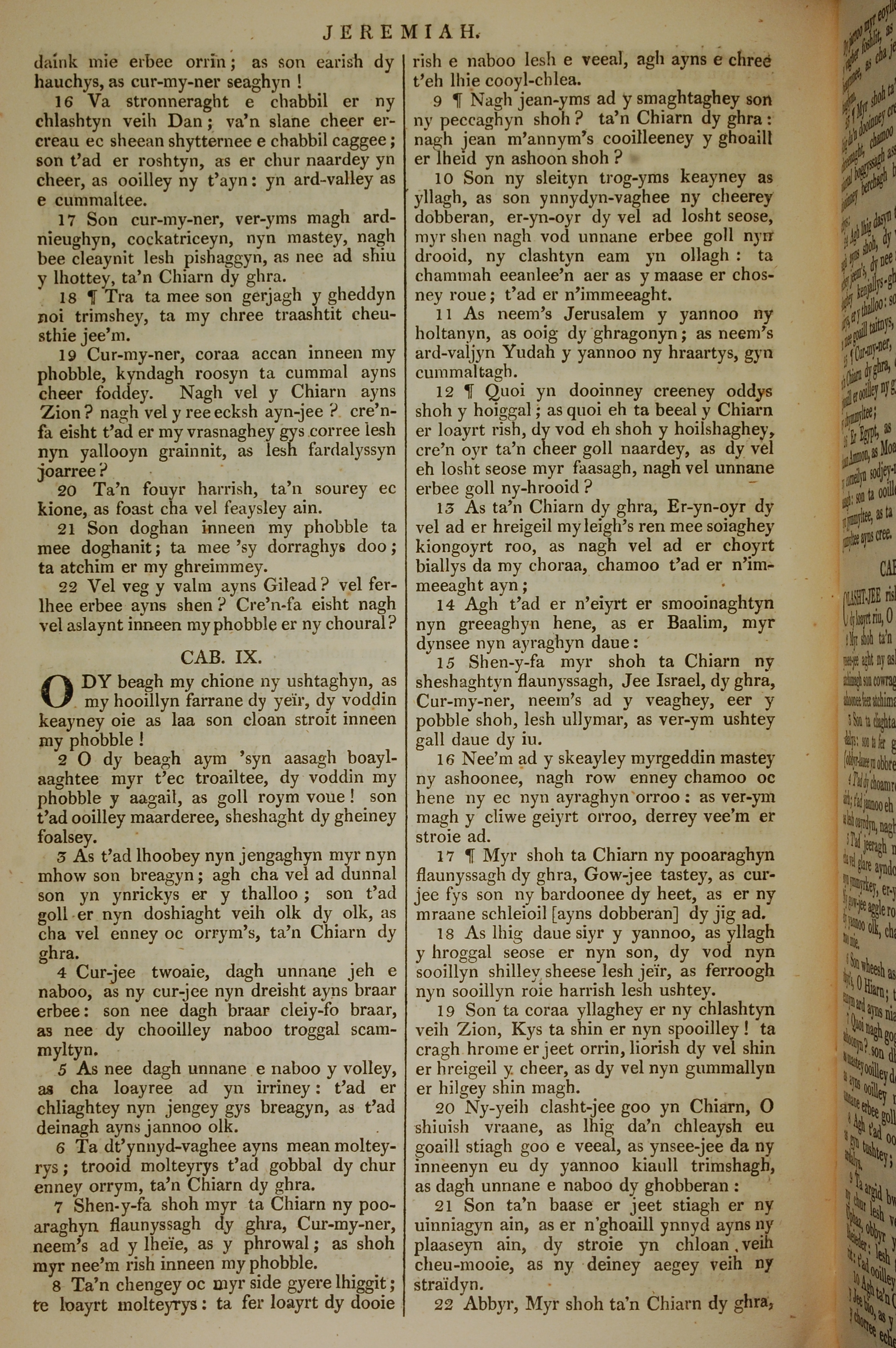 1819年曼島語聖經 耶利米書 8 章 16 節到 9 章 22 節