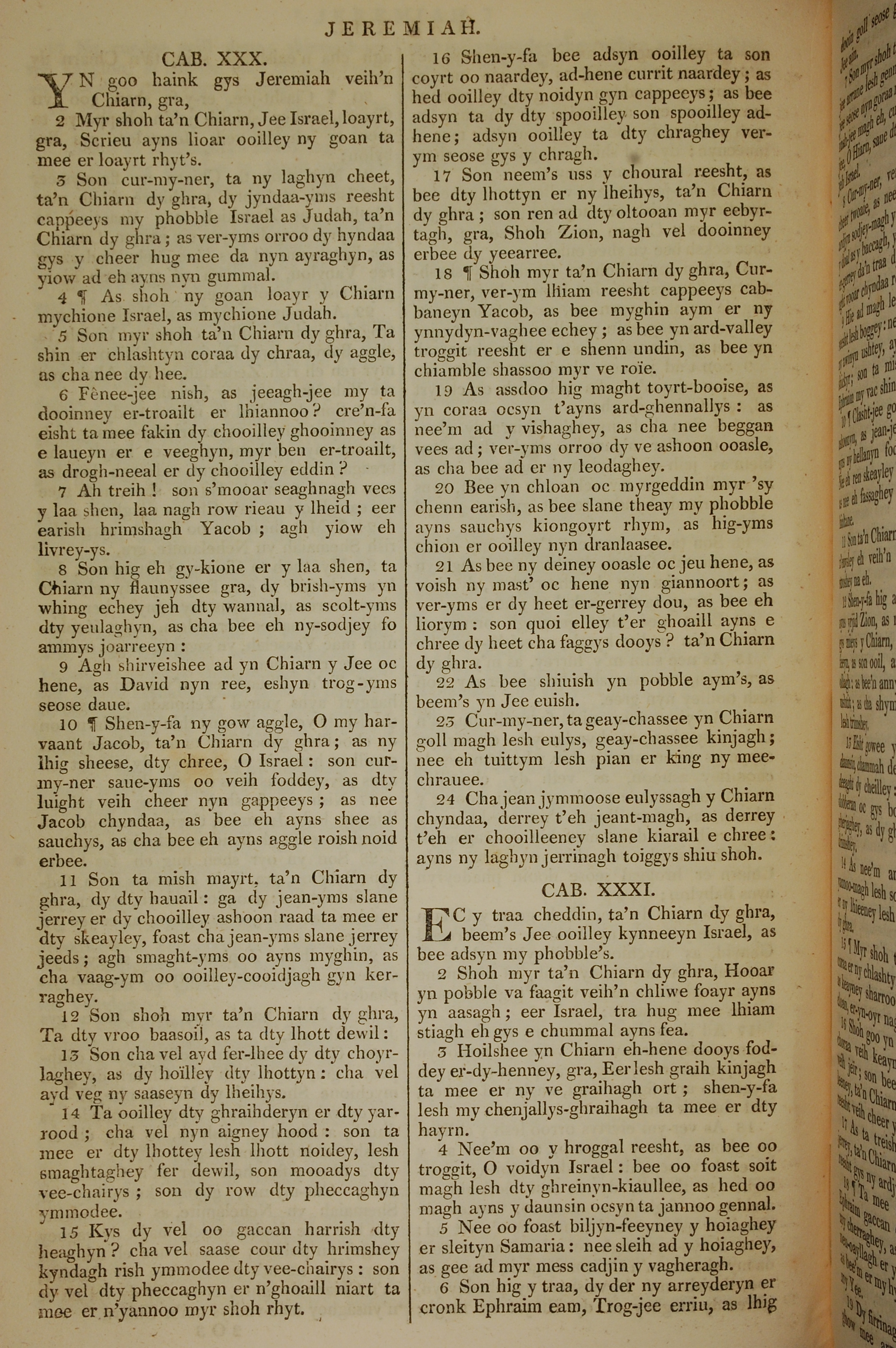 1819年曼島語聖經 耶利米書 30 章 1 節到 31 章 6 節