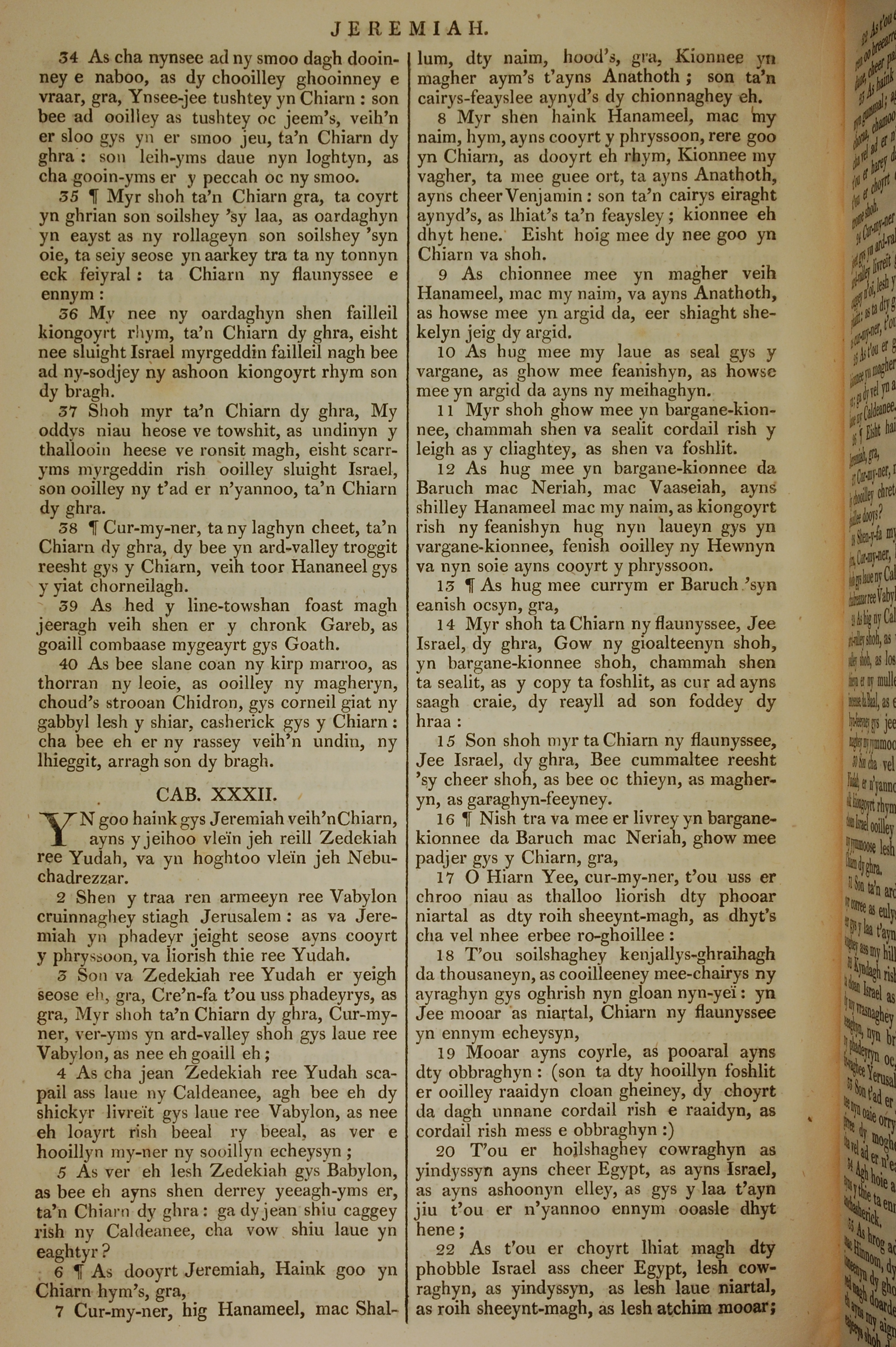 1819年曼島語聖經 耶利米書 31 章 34 節到 32 章 21 節