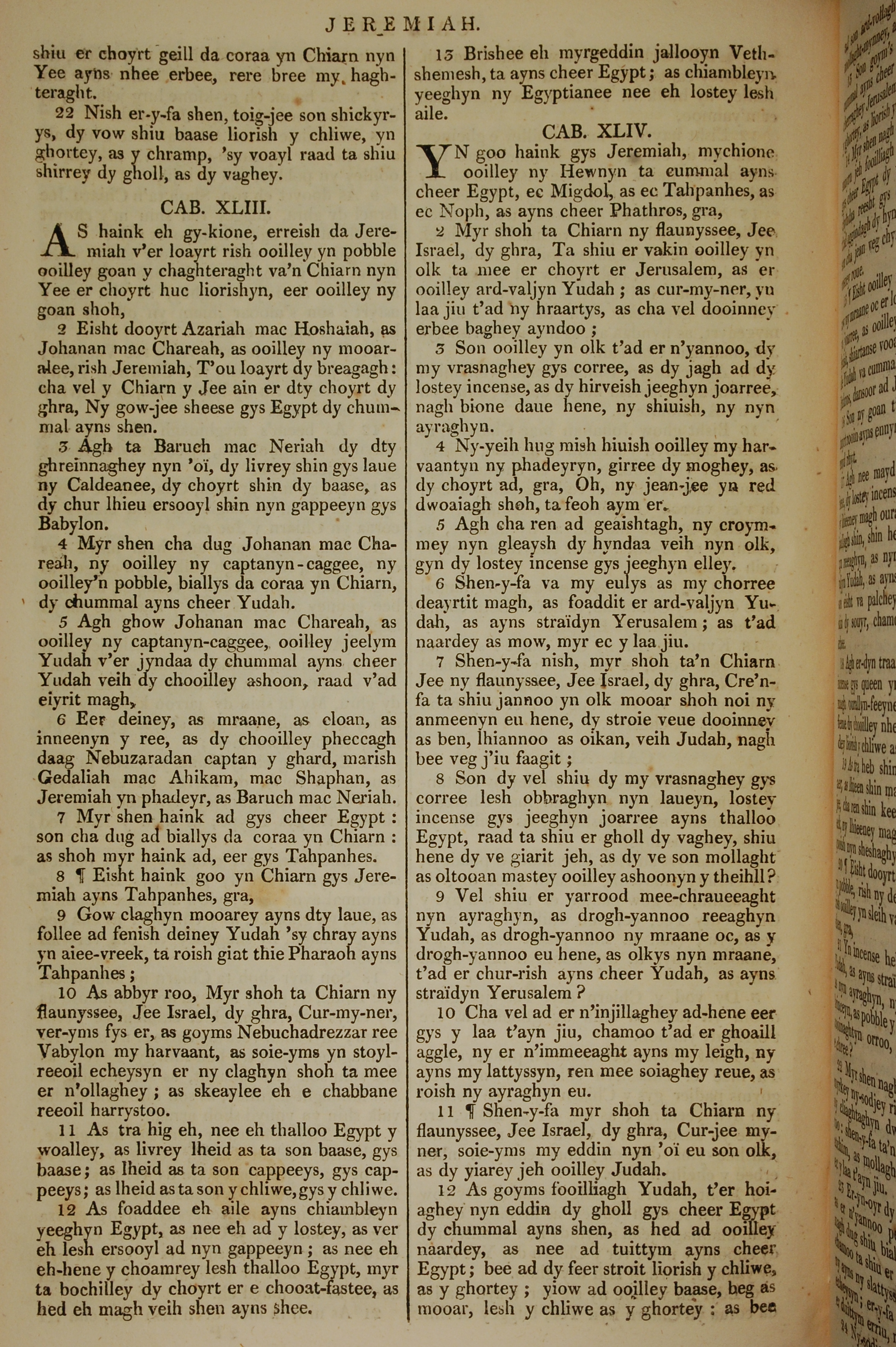 1819年曼島語聖經 耶利米書 42 章 22 節到 44 章 12 節