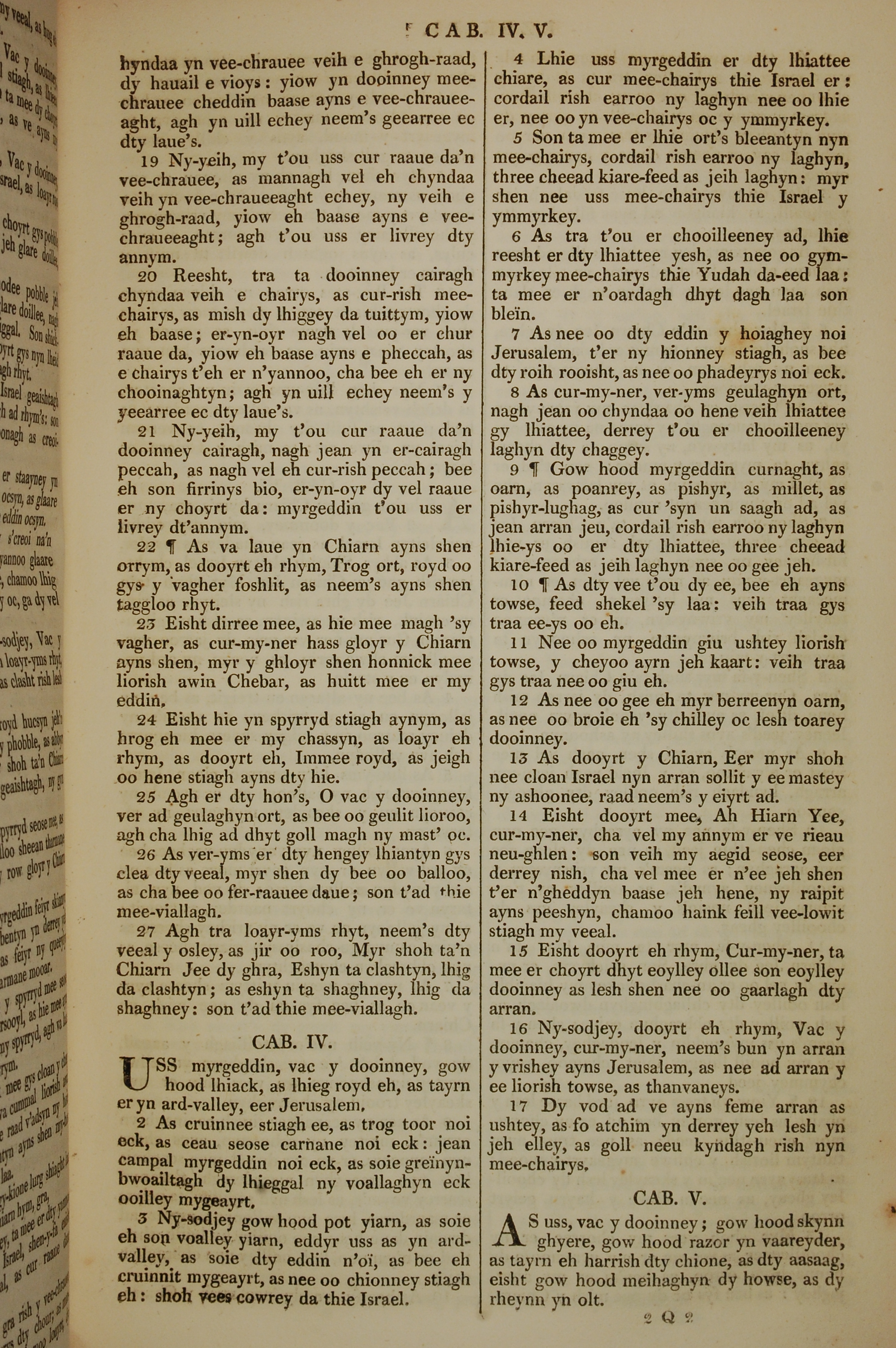 1819年曼島語聖經 以西結書 3 章 19 節到 5 章 1 節