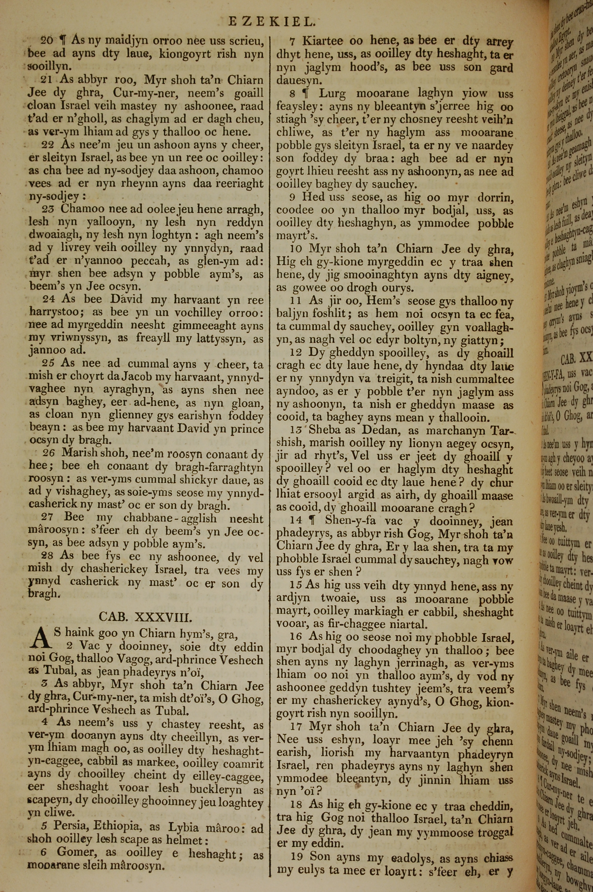 1819年曼島語聖經 以西結書 37 章 20 節到 38 章 19 節