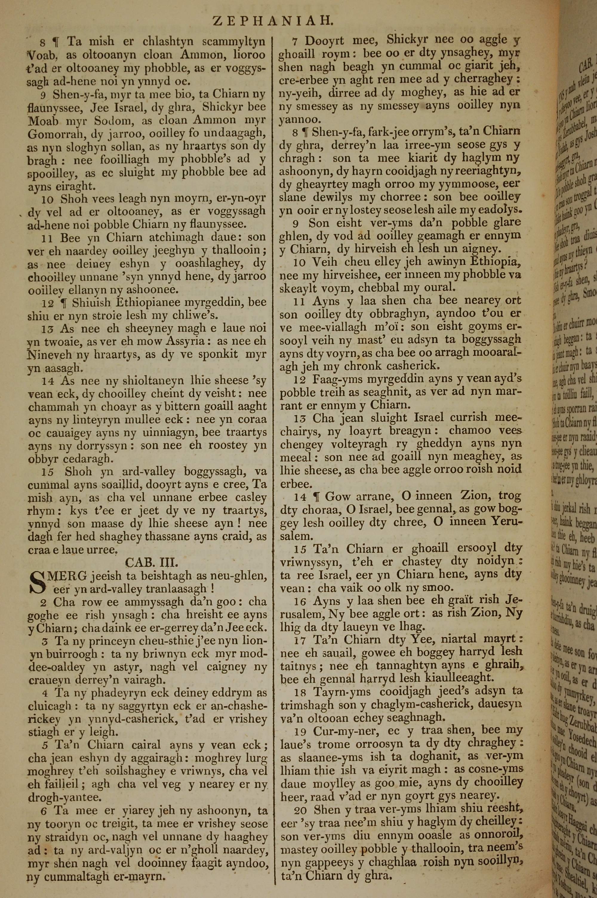 1819年曼島語聖經 西番雅書 2 章 8 節到 3 章 20 節