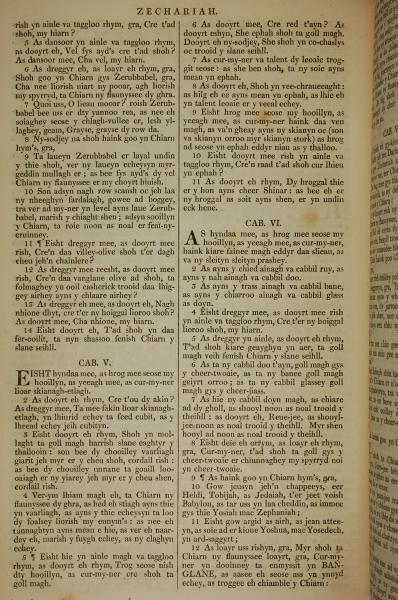 1819年曼島語聖經 撒迦利亞書 4 章 5 節到 6 章 12 節