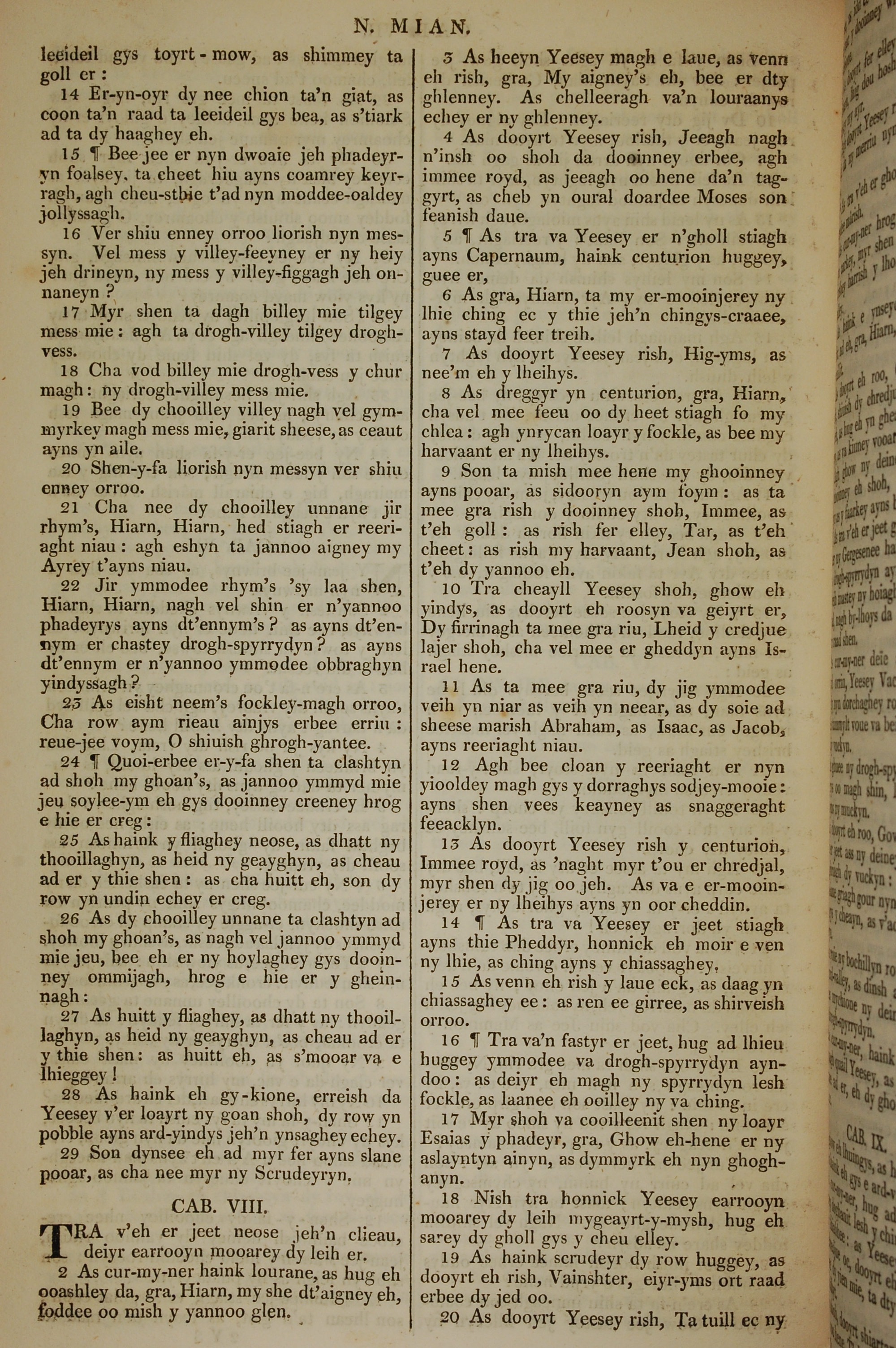 1819年曼島語聖經 馬太福音 7 章 14 節到 8 章 20 節