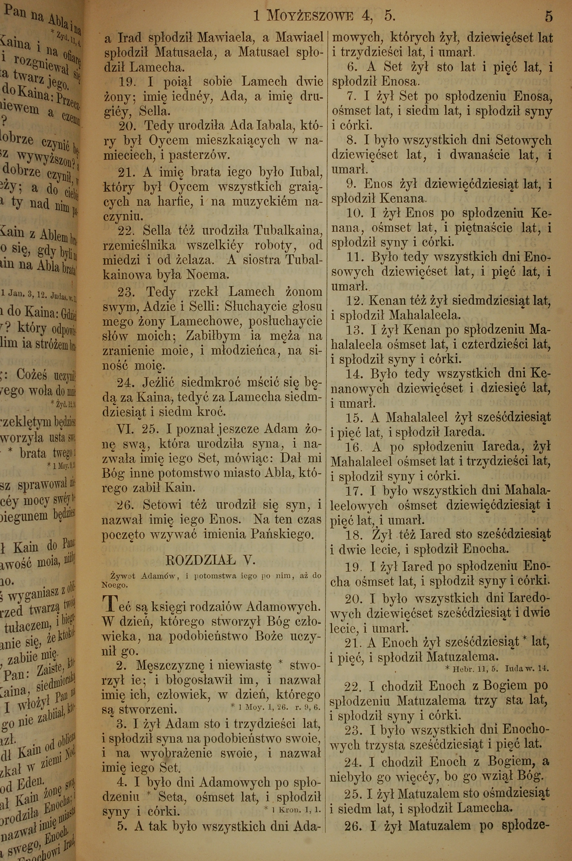 1857年波蘭文新舊約全書 創世記 4 章 19 節到 5 章 26 節