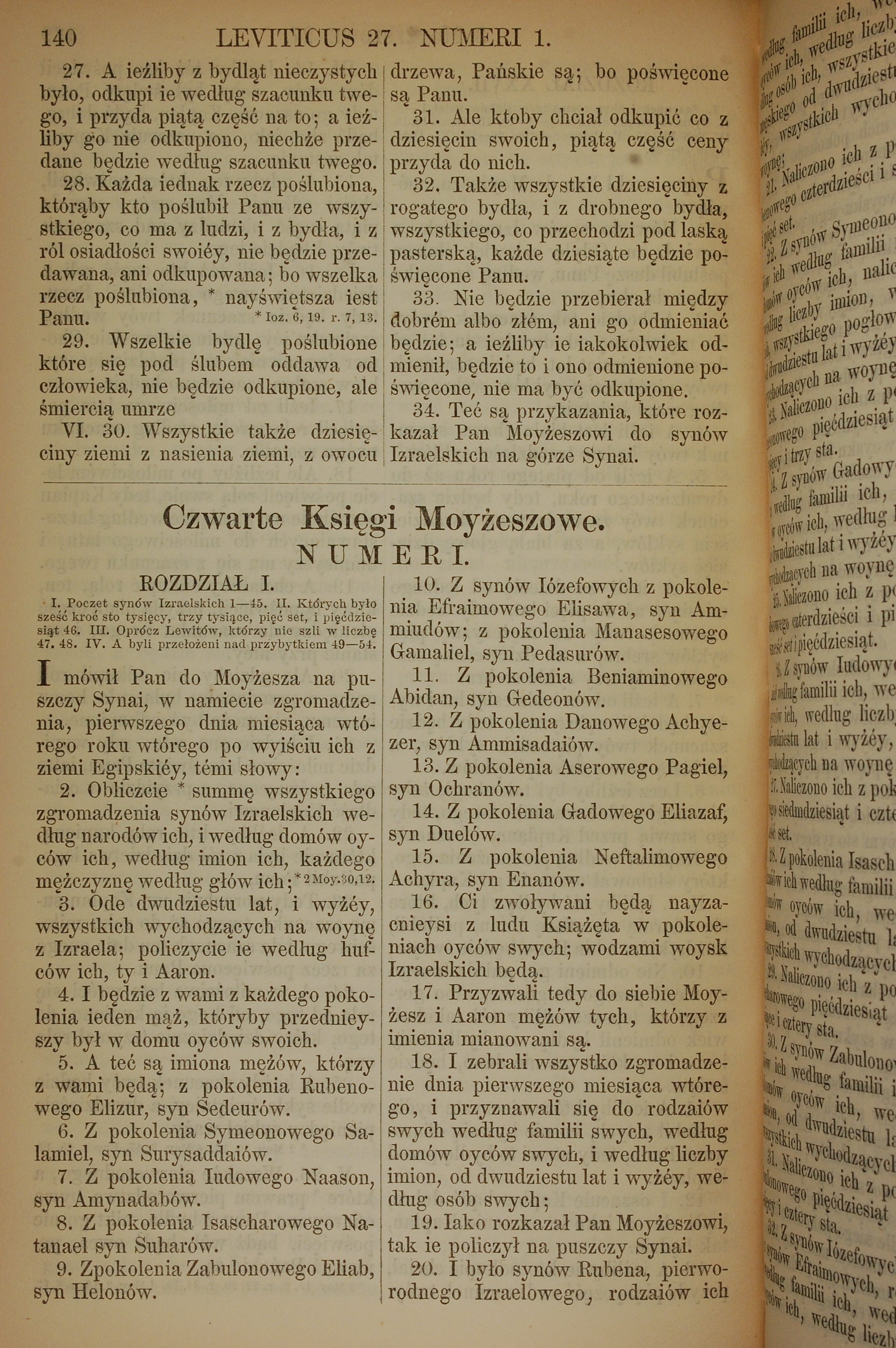 1857年波蘭文新舊約全書 民數記 1 章 1 節到 1 章 20 節