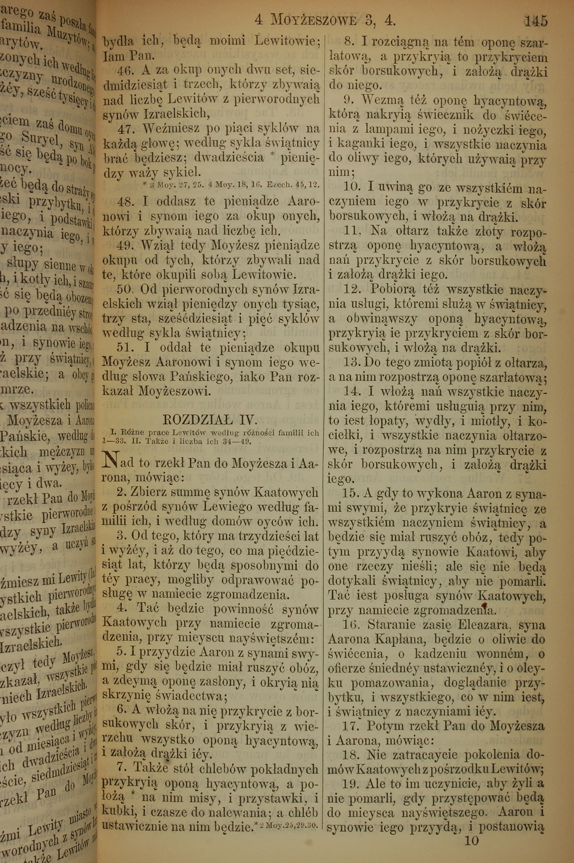 1857年波蘭文新舊約全書 民數記 3 章 46 節到 4 章 19 節